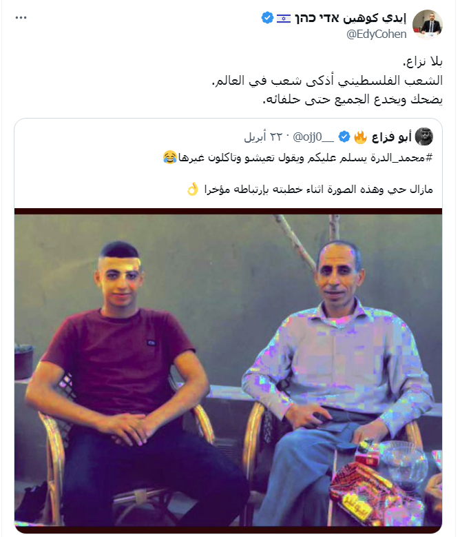 بداية الجدل الواسع لصورة محمد الدرة ووالده بدأ عندما نشر صحفي الاحتلال الإسرائيلي إيدي كوهين صورة عبر منصة "أكس"، لـ جمال الدرة، والد محمد الدرة، وهو يجلس بجوار نجله محمد الدرة، والصورة أثناء خطبة محمد الدرة.
