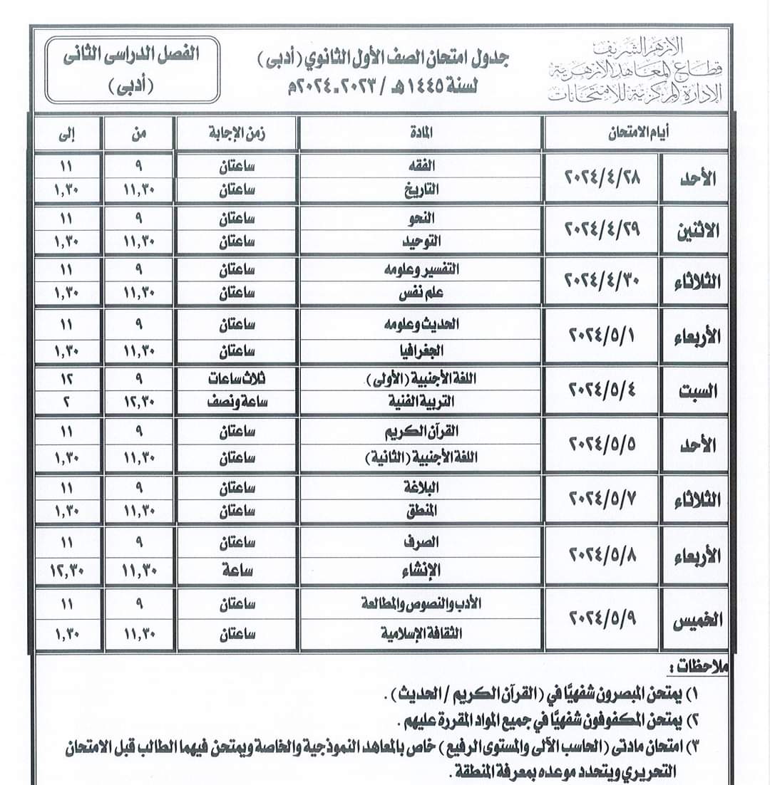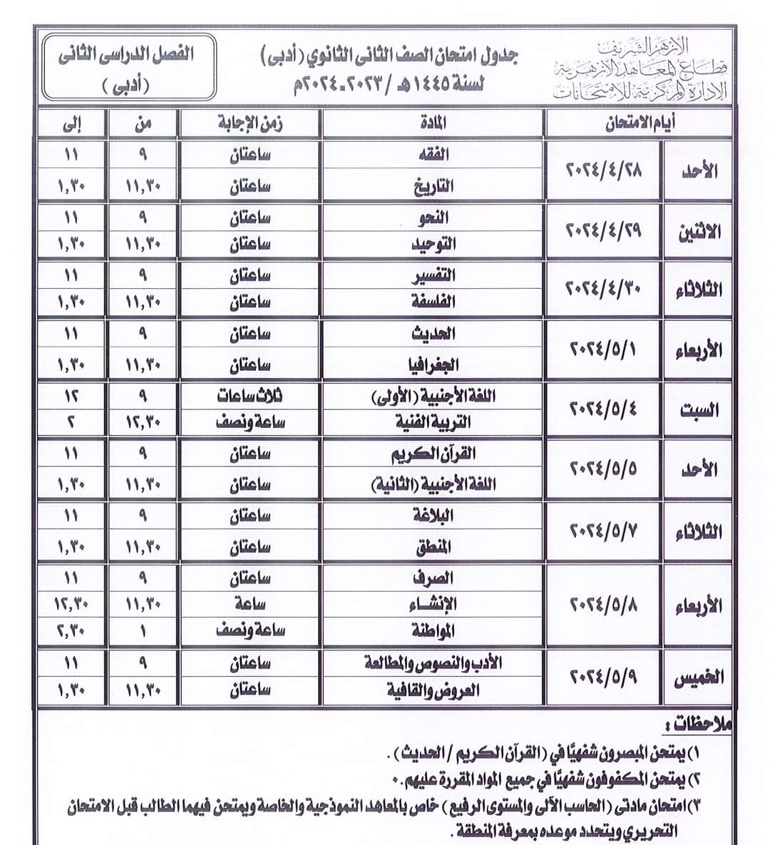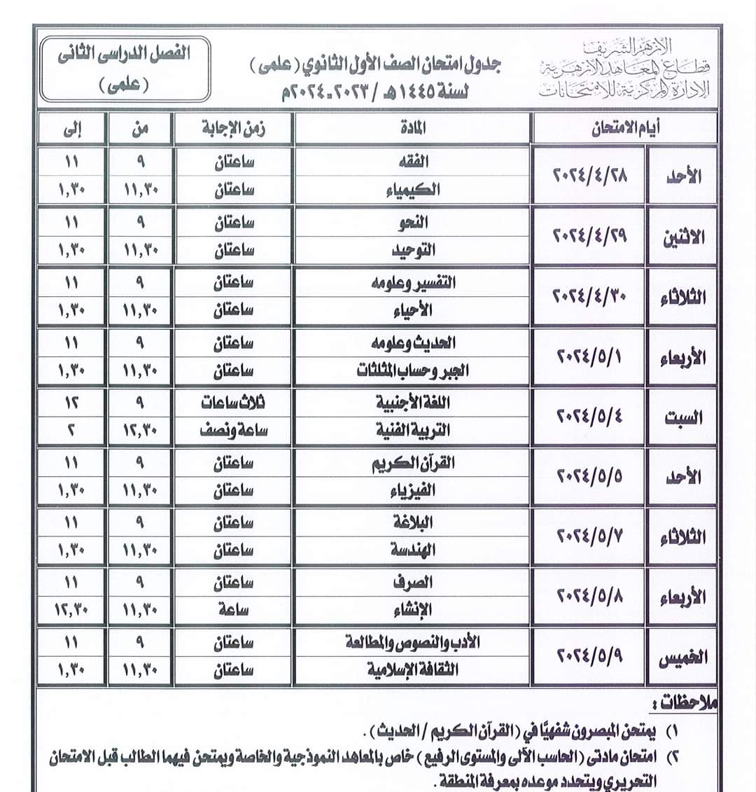 لطلاب النقل الثانوي الأزهري، تعرف على جدول الامتحانات الجديد بعد تعديله (صور)
