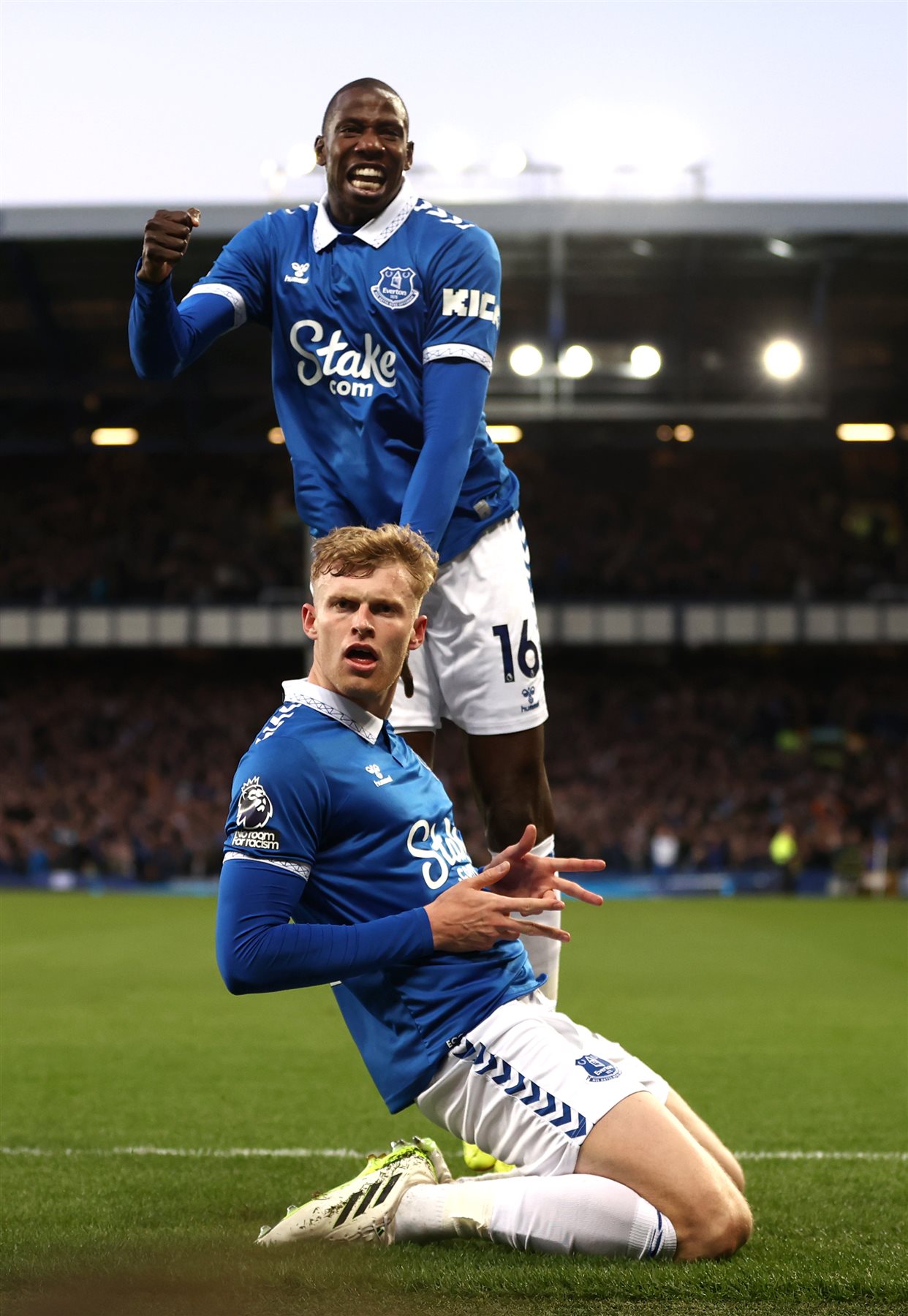 سجل برانثوايت الهدف الأول لـ إيفرتون أمام ليفربول في الدقيقة 27.