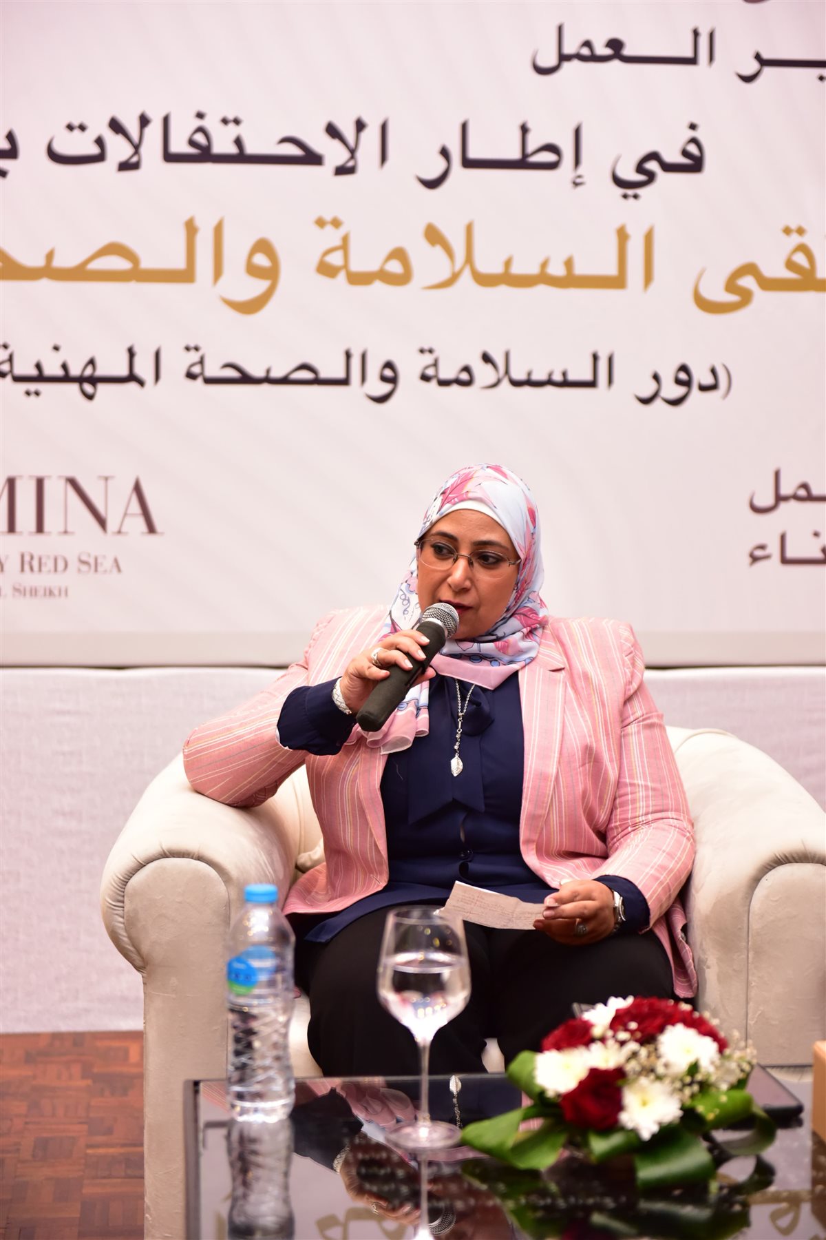 واختتمت كلمتها بالتأكيد على ضرورة تكاتف طرفي الانتاج في الوصول الي بيئة عمل آمنة للجميع.
