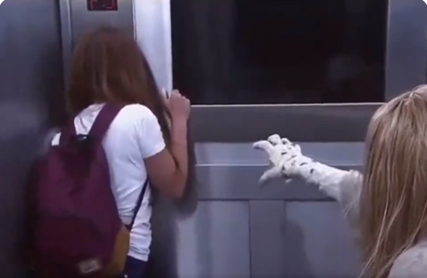مقلب الكهرباء وشبح المصعد كاد يقتل فتاة في البرازيل
