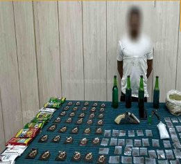 كما ضبط عاطل بدائرة قسم شرطة المعصرة لقيامه بتصنيع المواد المخدرة وبحوزته فرد خرطوش وطلقة نارية - كمية لمخدر الشادو – 4 زجاجات بداخلهم مواد تستخدم فى تصنيع الشادو – قطعة سلاح أبيض.
