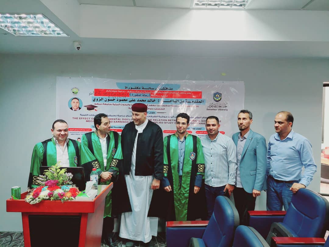 منح معهد الدراسات العليا والبحوث البيئية بجامعة دمنهور، تحت رعاية الدكتور إلهامي ترابيس - رئيس الجامعة، والدكتور عبد الحميد السيد - نائب رئيس الجامعة للدراسات العليا والبحوث والدكتور ياسر سعيد - وكيل معهد الدراسات العليا والبحوث البيئية بالبستان، باحثين من دولة ليبيا درجة الدكتوراه في تخصص العلوم الإدارية والاقتصادية.