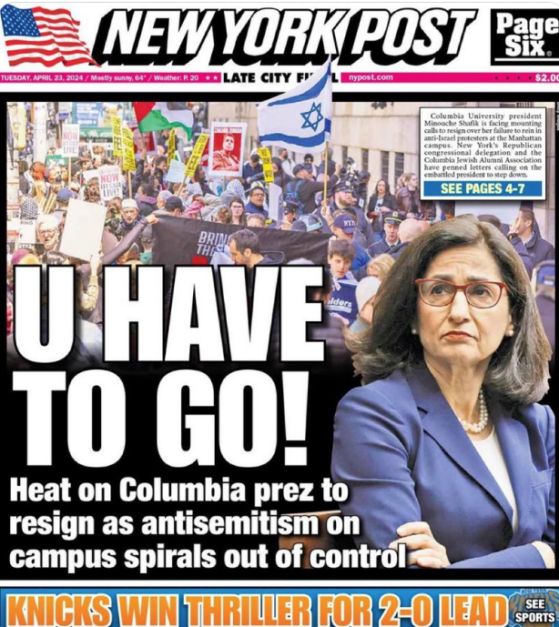الأوضاع داخل الجامعات الأمريكية تتطور وتصل حد الانفجار ضد الكيان، الأمر الذي يخشاه الاحتلال الإسرائيلي ومؤسسيه، ويعتبره الخبراء أهم حدث في أمريكا الآن، والتي تمثل حالة تمرد واحتجاج تجتاح الجامعات الأمريكية دعمًا وتأييدًا لفلسطين وإدانة لجرائم اسرائيل في غزة والضفة، خاصة بعدما قامت رئيسة جامعة كولومبيا في نيويورك نعمت شفيق بفصل 15 طالبًا واستدعاء الشرطة للطلبة بزعم قيامهم بأعمال عنف، وقامت الشرطة الأمريكية بإلقاء القبض على عشرات الطلبة وأساتذة الجامعة والموظفين، ما دفع الكثير من الجامعات بالانتفاض مساندة لحركة طلاب جامعة كولومبيا ضد أعمال العنف التي قامت بها الشرطة ضد طلاب وأساتذة جامعة كولومبيا.