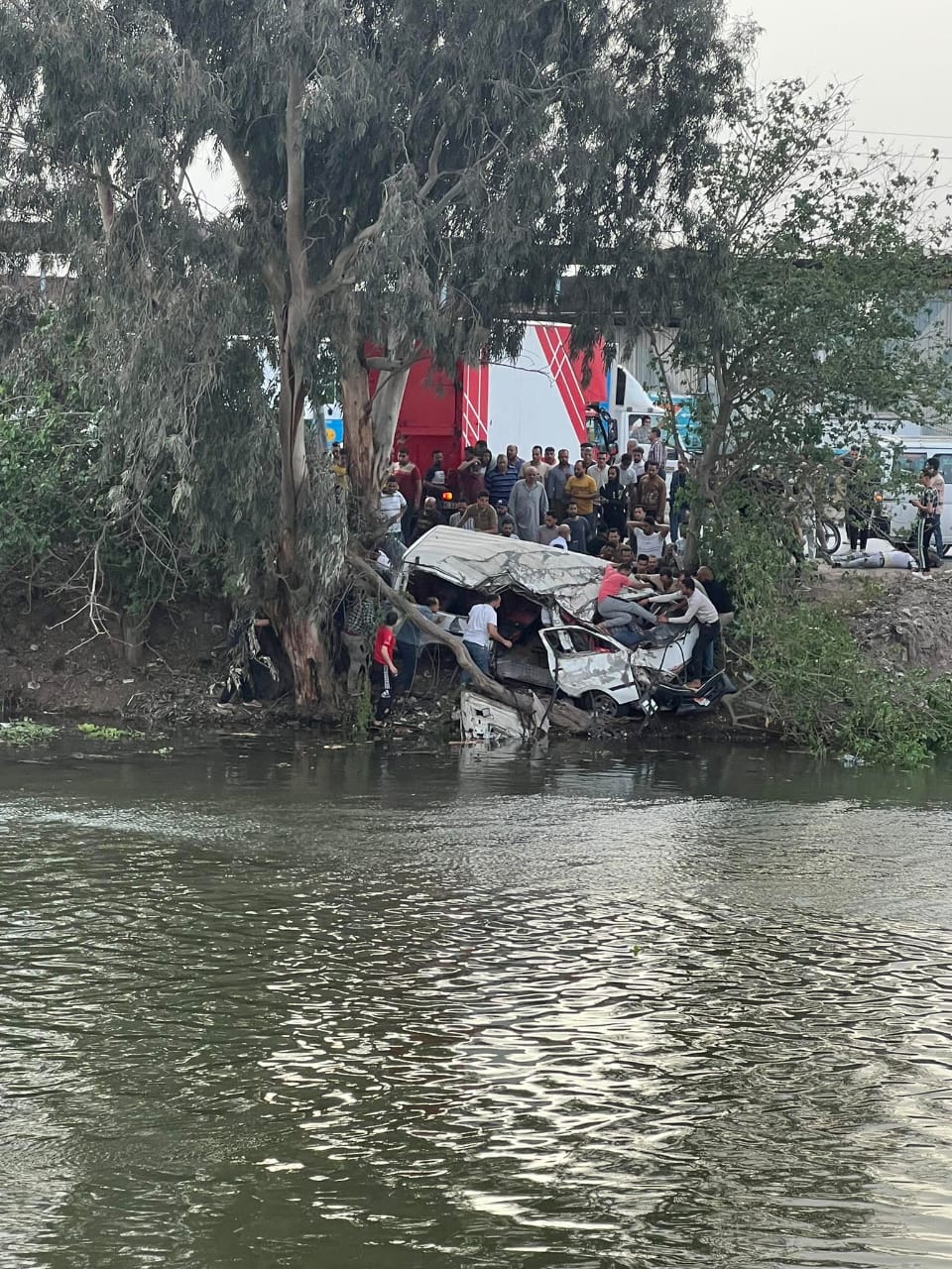 وجار تمشيط الترعة بحثا عن أي ضحايا محتمل سقوطهم داخل المياه وتحرر المحضر اللازم بالواقعه