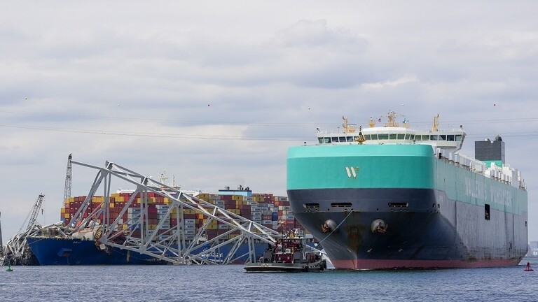 عبور أول سفينة شحن بعد انهيار جسر بالتيمور في الولايات المتحدة (فيديو وصور)