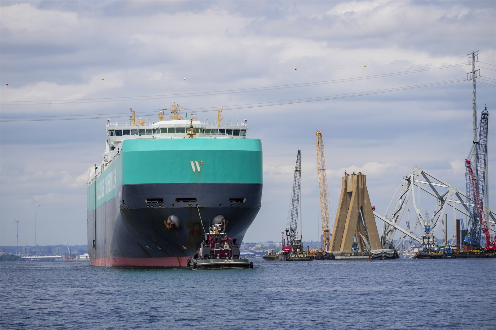 عبرت أول سفينة شحن القناة التي تم شقها حديثا في بالتيمور بالولايات المتحدة بعد أن تقطعت بها السبل في الميناء لمدة شهر منذ انهيار جسر "فرانسيس سكوت كي" جراء اصطدام سفينة به.