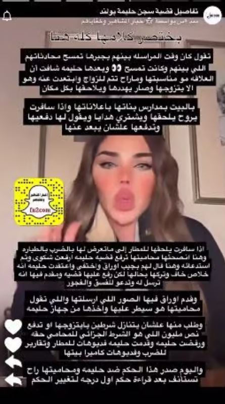 كشفت محامية الإعلامية الكويتية المعروفة حليمة بولند، تفاصيل قصة حليمة التي صدر فيها حكم عليها أمس الخميس بالسجن لمدة عامين مع الشغل والنفاذ، وذلك بتهمة “التحريض على الفسق والفجور”.
