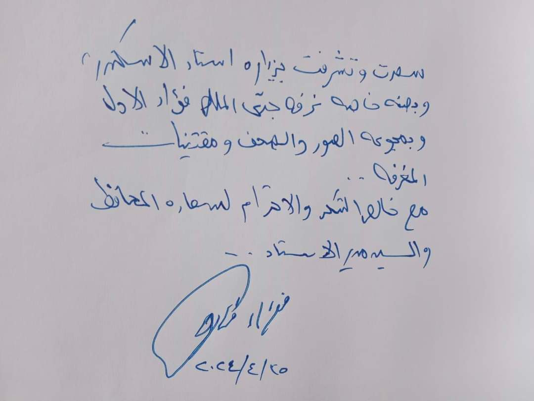 كشفت هيئة تنشيط السياحة بالإسكندرية برئاسة اللواء هشام لطفي، عن تقديم الملك أحمد فؤاد الثاني، خالص الشكر والاحترام إلى اللواء محمد الشريف- محافظ الإسكندرية، واللواء هشام لطفي-مدير عام الهيئة الإقليمية لتنشيط السياحة، واستاد الإسكندرية الرياضي، وذلك خلال كلمته التذكارية التى دونها بكتاب كبار الزوار.