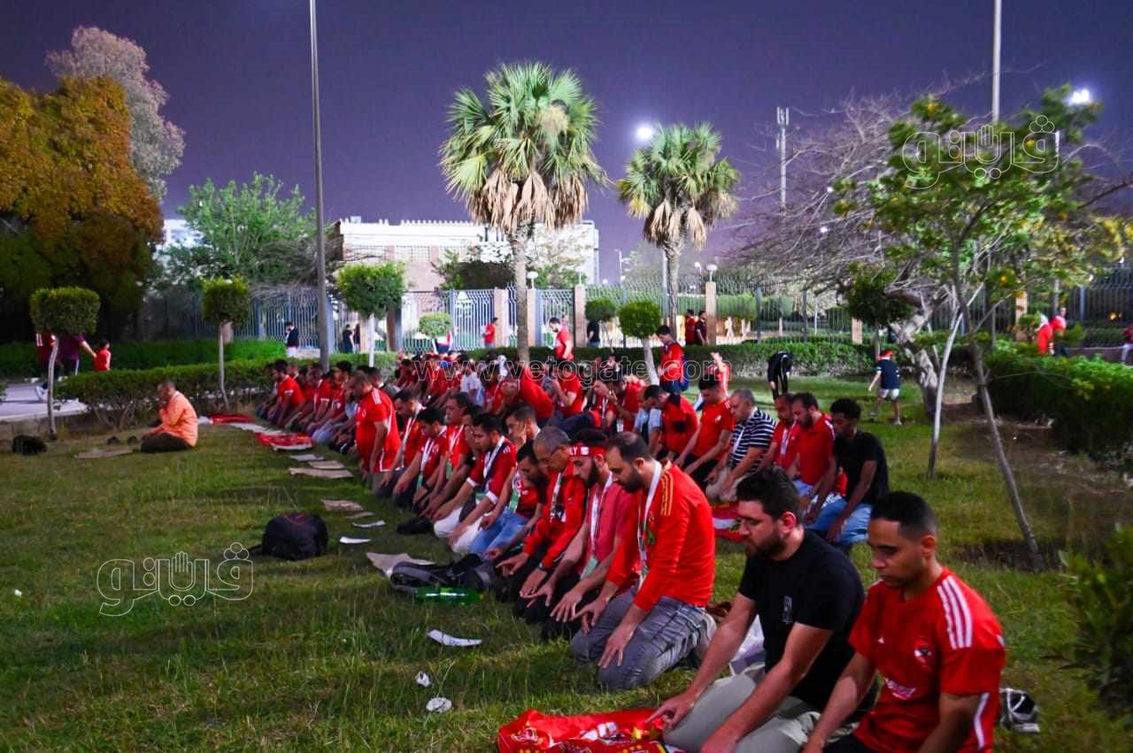 حرصت جماهير النادي الأهلي على تأدية صلاة العشاء قبل انطلاق مباراة فريقها أمام مازيمبي في الدور نصف النهائي من دوري أبطال أفريقيا.