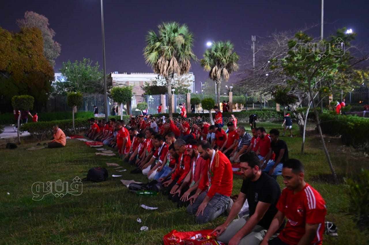 جماهير الأهلي تؤدي صلاة العشاء في المدرجات (صور)