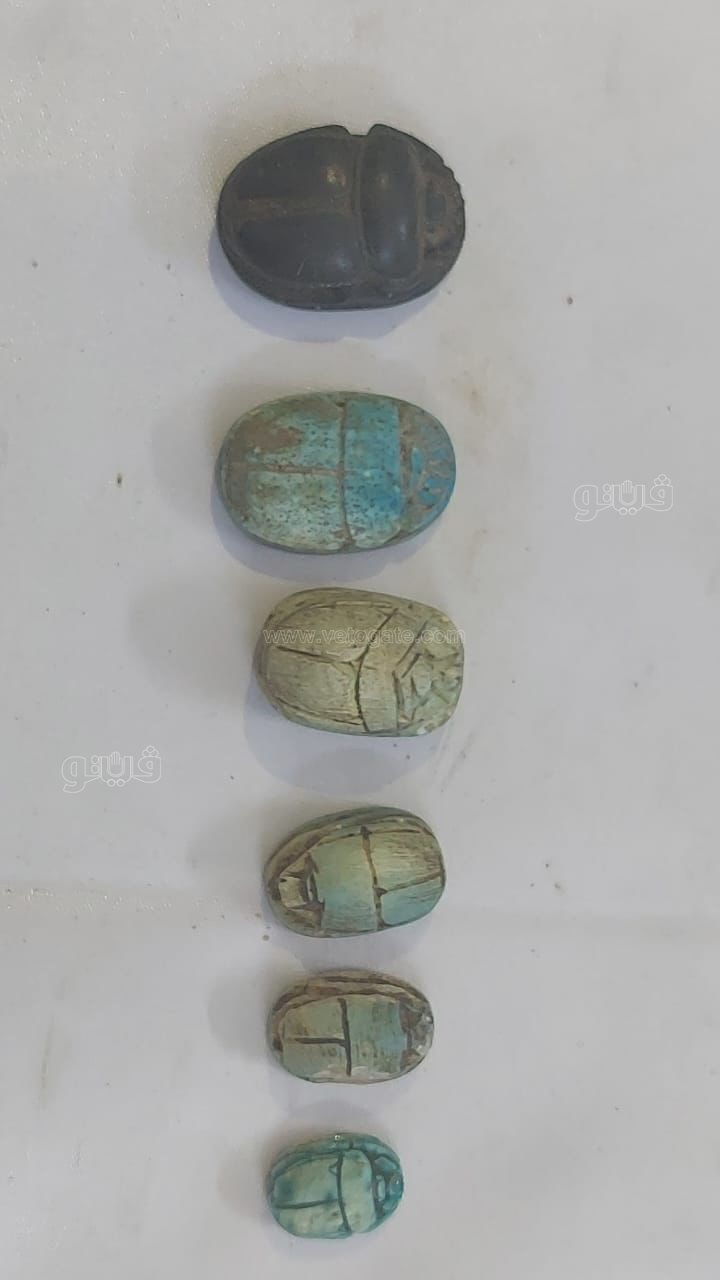 كما عثر على عدد من اللوحات الحجرية ولفائف البردي والجعران والقلادات مختلفة الأحجام والأشكال، وعدد من التماثيل وأجزاء تماثيل غير مكتملة متنوعة تعود لعصور قديمة، وعدد من القطع الحجرية والخشبية، وقطع من الزخرف والفيانس والفخار، وأدوات منزلية تعود لعصور مختلفة، وعدد من العملات المعدنية مختلفة الأشكال والأحجام تعود لعصور قديمة.