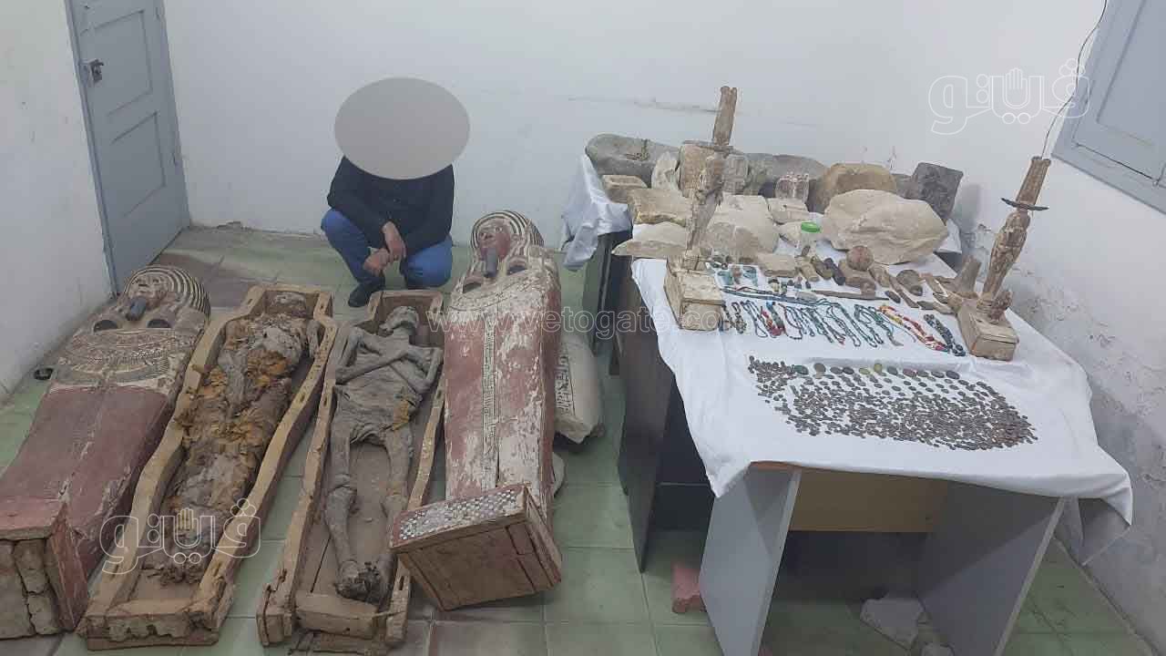 كنز أثري ضخم في أسيوط.. موظف يحوّل منزله إلى مغارة على بابا.. والأمن يضبط توابيت وتماثيل و1118 قطعة أثرية (صور)