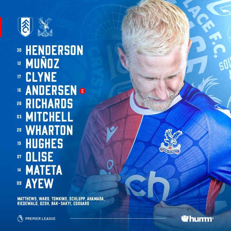 ودخل فريق كريستال بالاس المباراة بتشكيل مكون من: