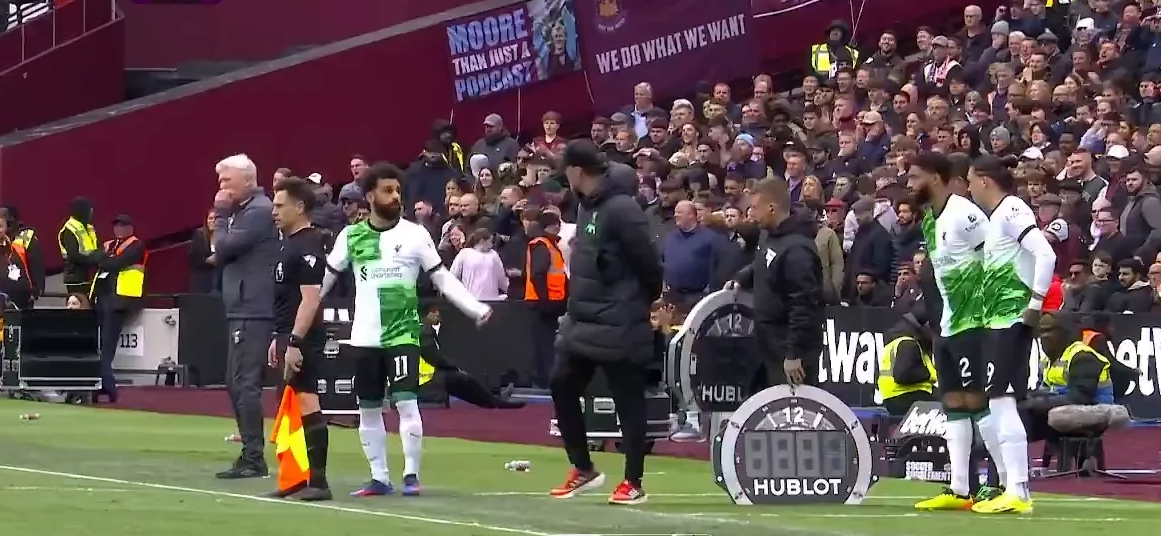 ووقعت مشادة بين يورجن كلوب مدرب فريق ليفربول ومحمد صلاح لاعب الفريق وقائد المنتخب الوطني، أثناء مشاركة الأخير في المباراة التي جمعت الريدز بـ وست هام في الجولة 35 من الدوري الإنجليزي الممتاز البريميرليج.