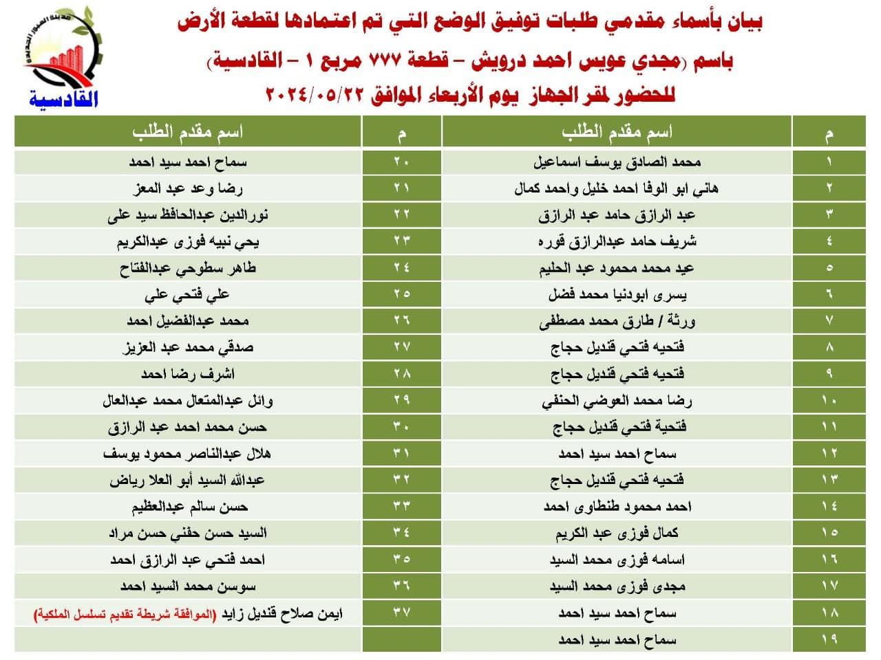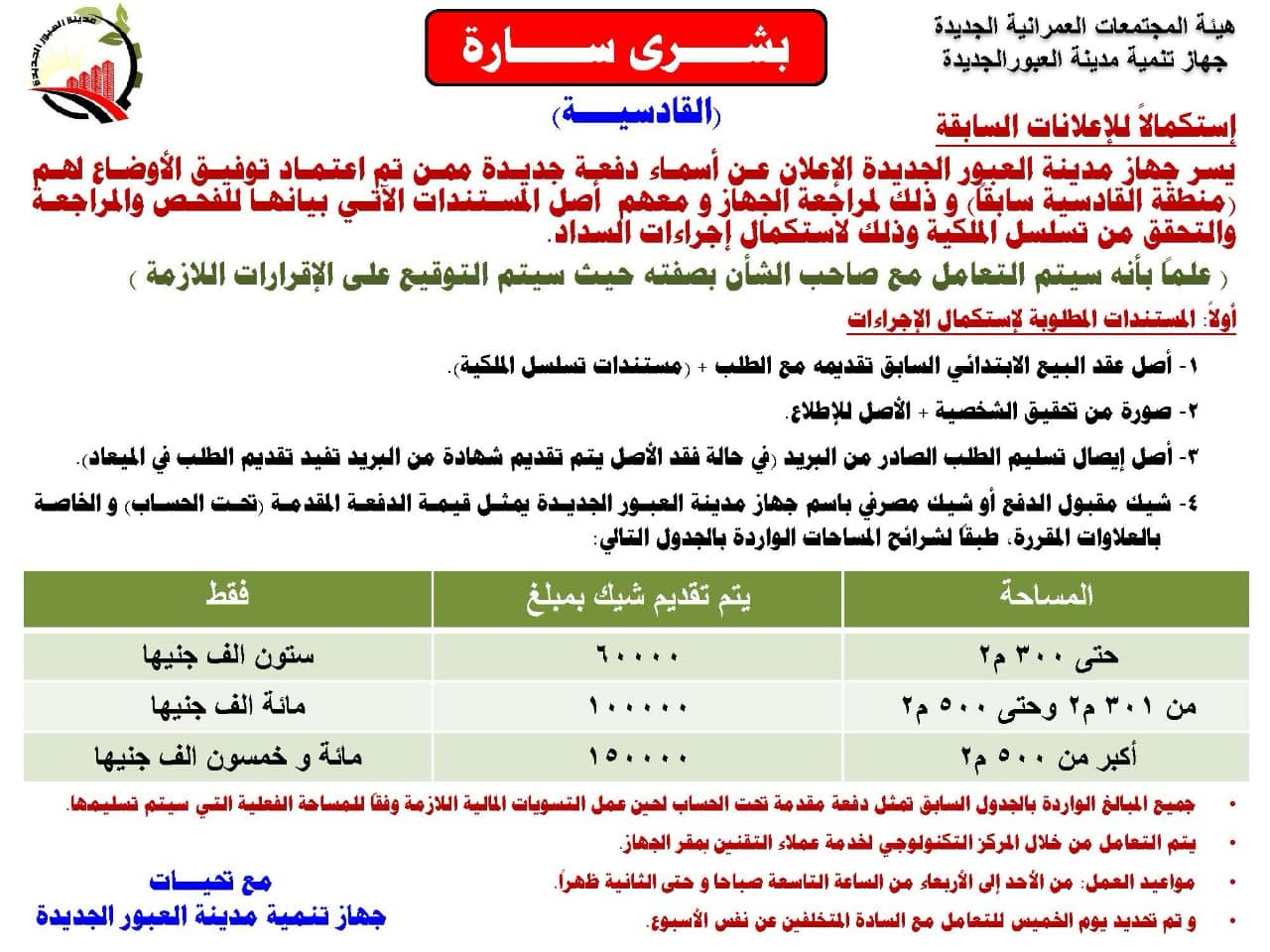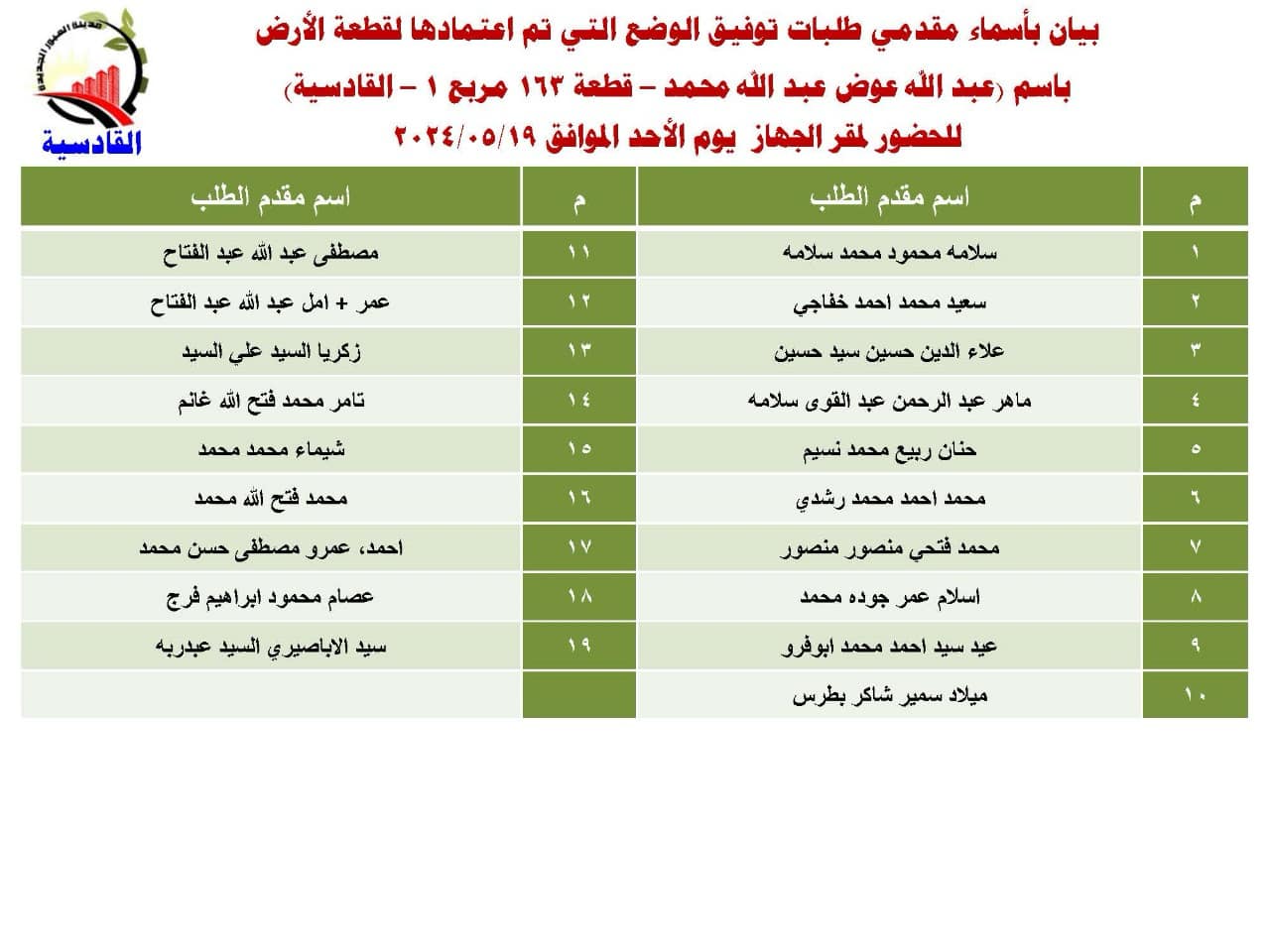 بالأسماء، تقنين دفعة جديدة لأراضي القادسية بالعبور الجديدة (صور)