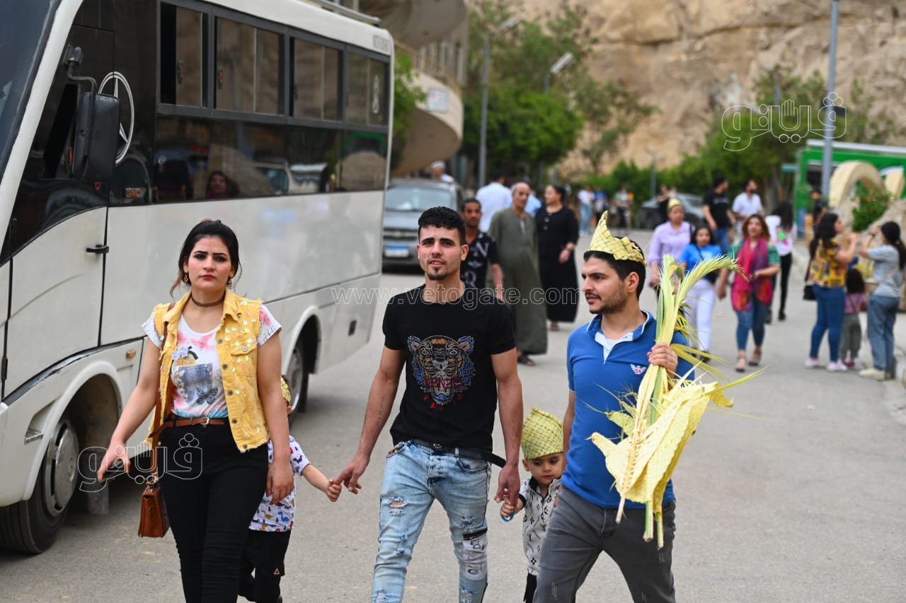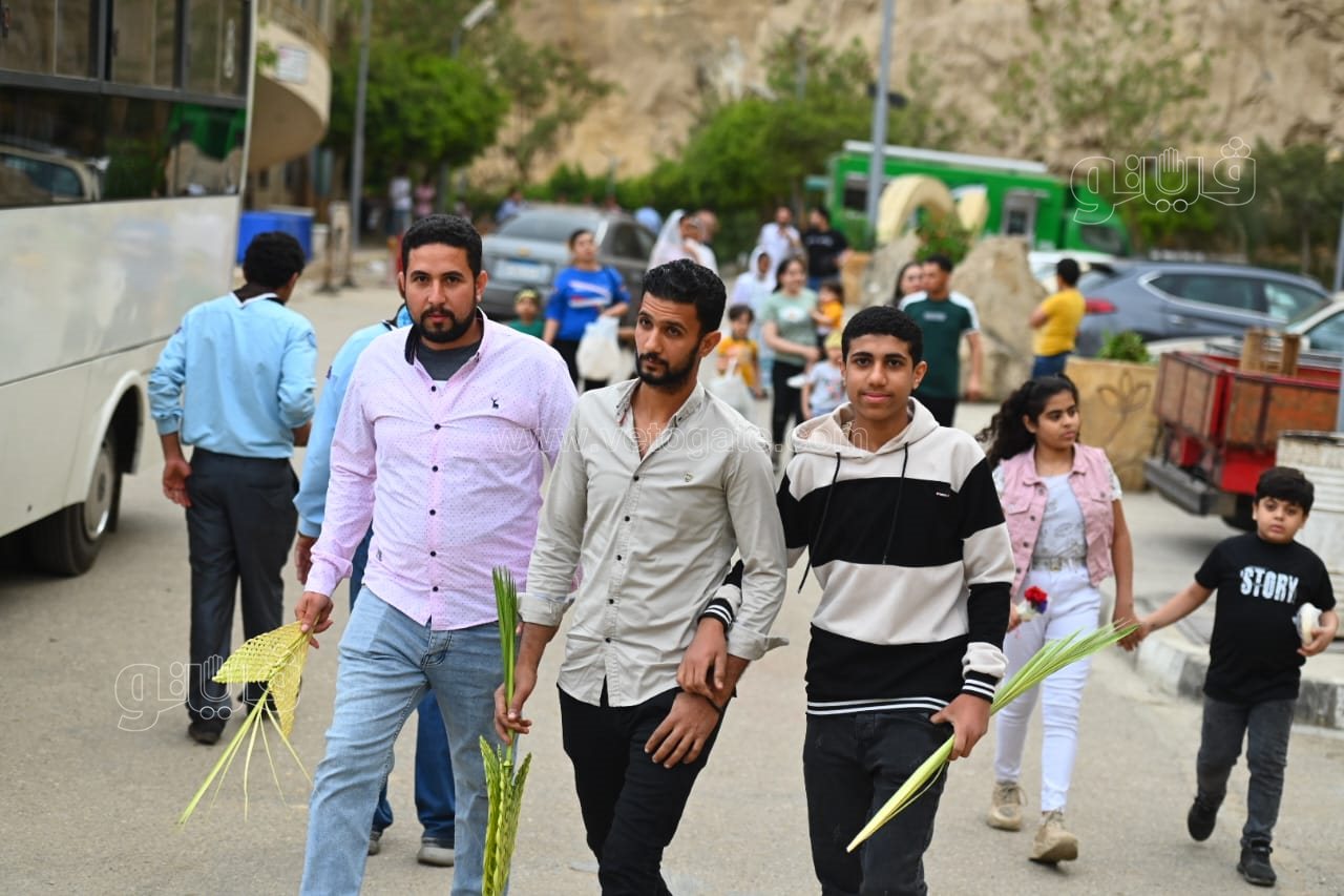 توافد الأقباط على دير سمعان الخراز لحضور قداس أحد السعف (صور)