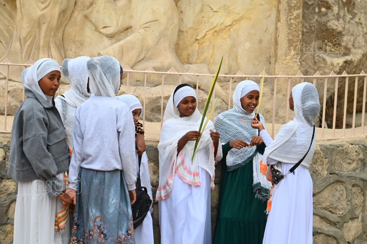 وحرص الحضور من على حمل زعف النخيل والذي اتخذ اكثر من شكل أبرزها القلب والتاج، احتفالا بذكرى دخول السيد المسيح إلى أورشليم راكبا على جحش ابن اتان.