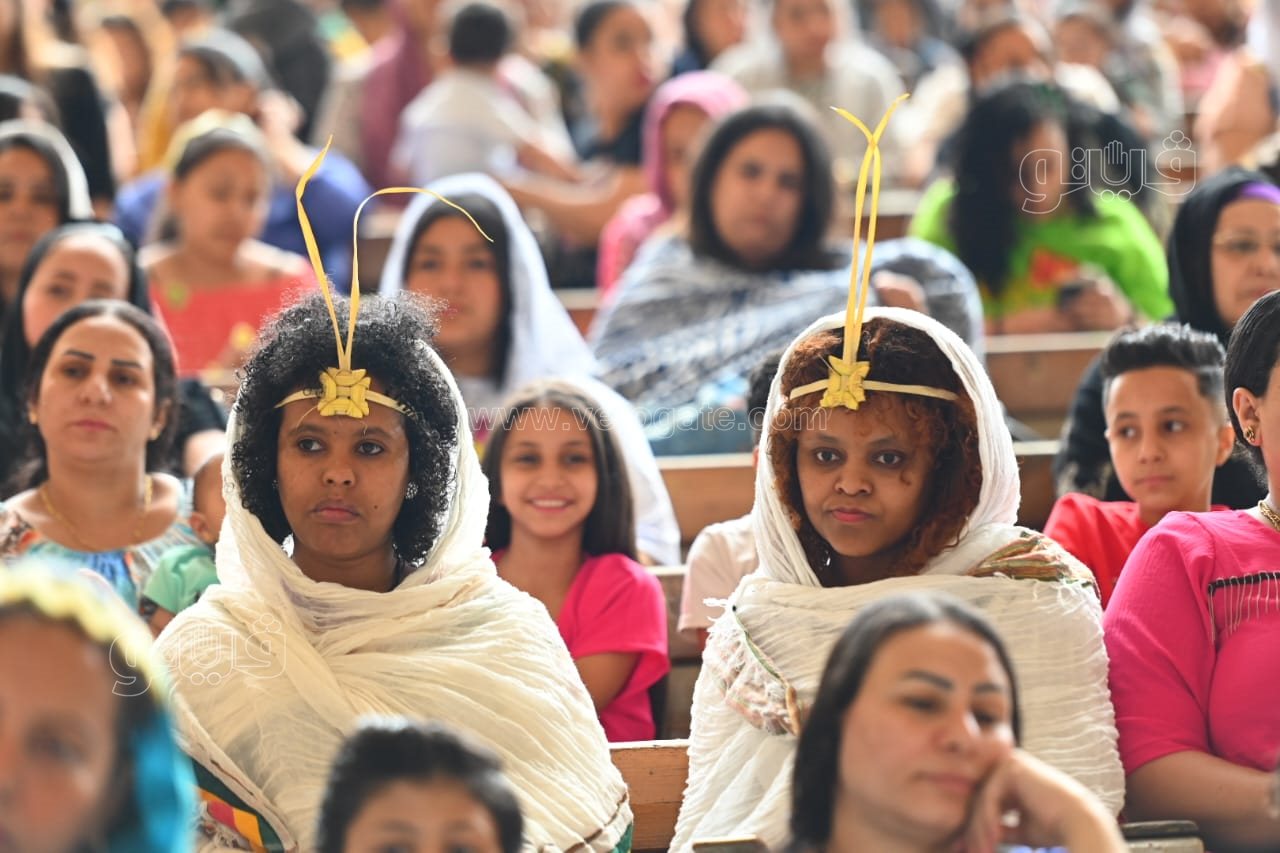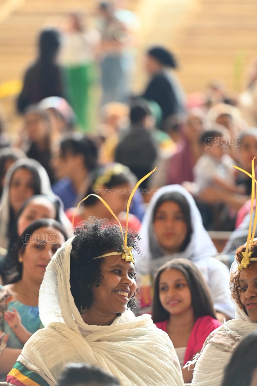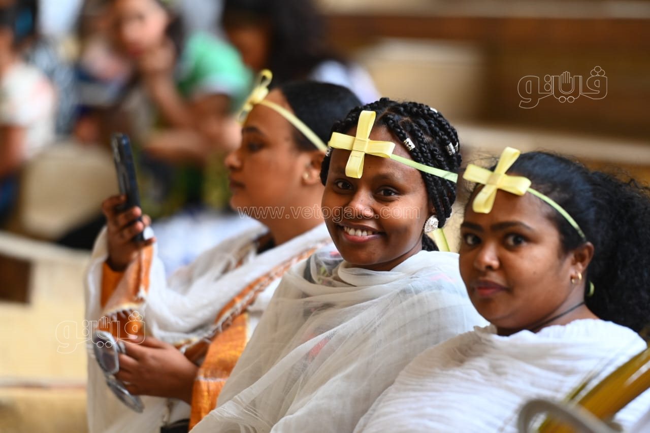 واحتفل الحضور من المصريين مع الجالية السودانية بأحد الشعاين بحمل زعف النخيل والذي اتخذ أكثر من شكل أبرزها القلب والتاج، احتفالا بذكرى دخول السيد المسيح إلى أورشليم راكبا على جحش ابن اتان.