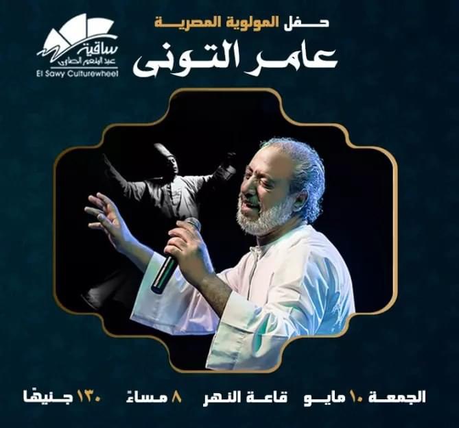عامر التوني يشدو بالمدائح النبوية والابتهالات في ساقية الصاوي 10 مايو