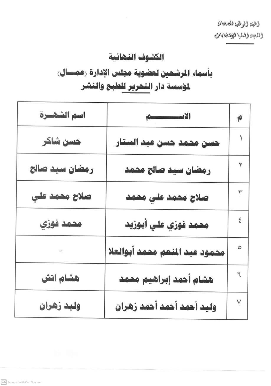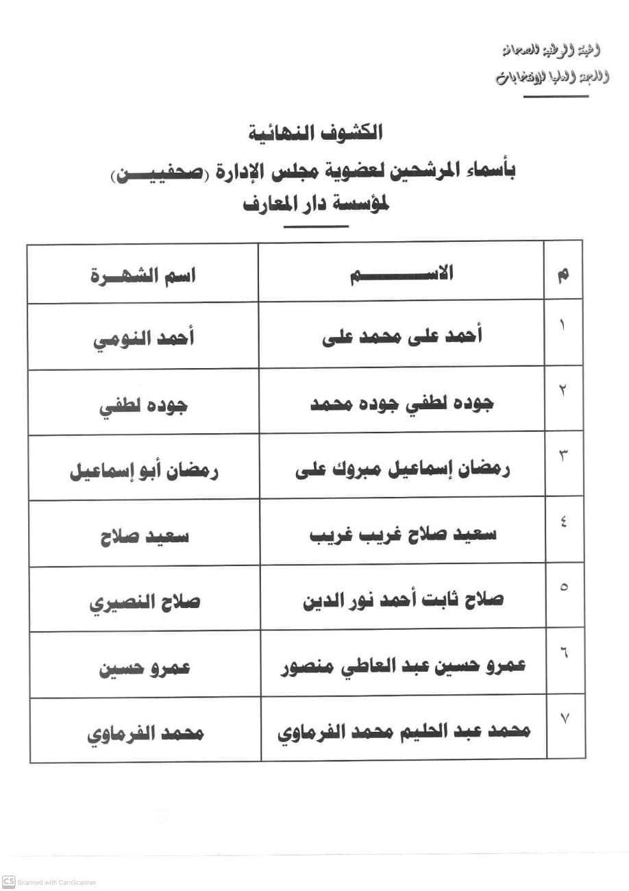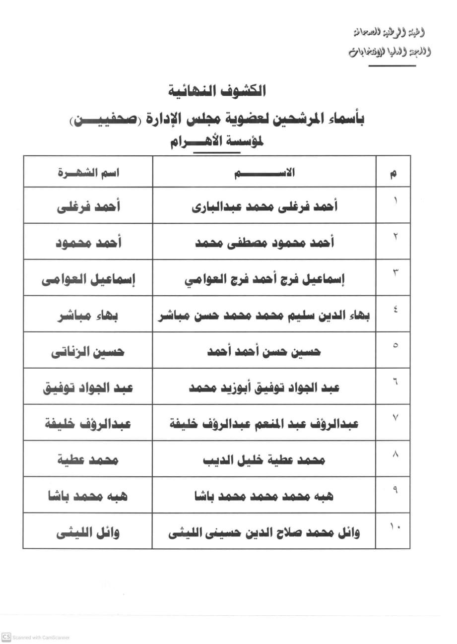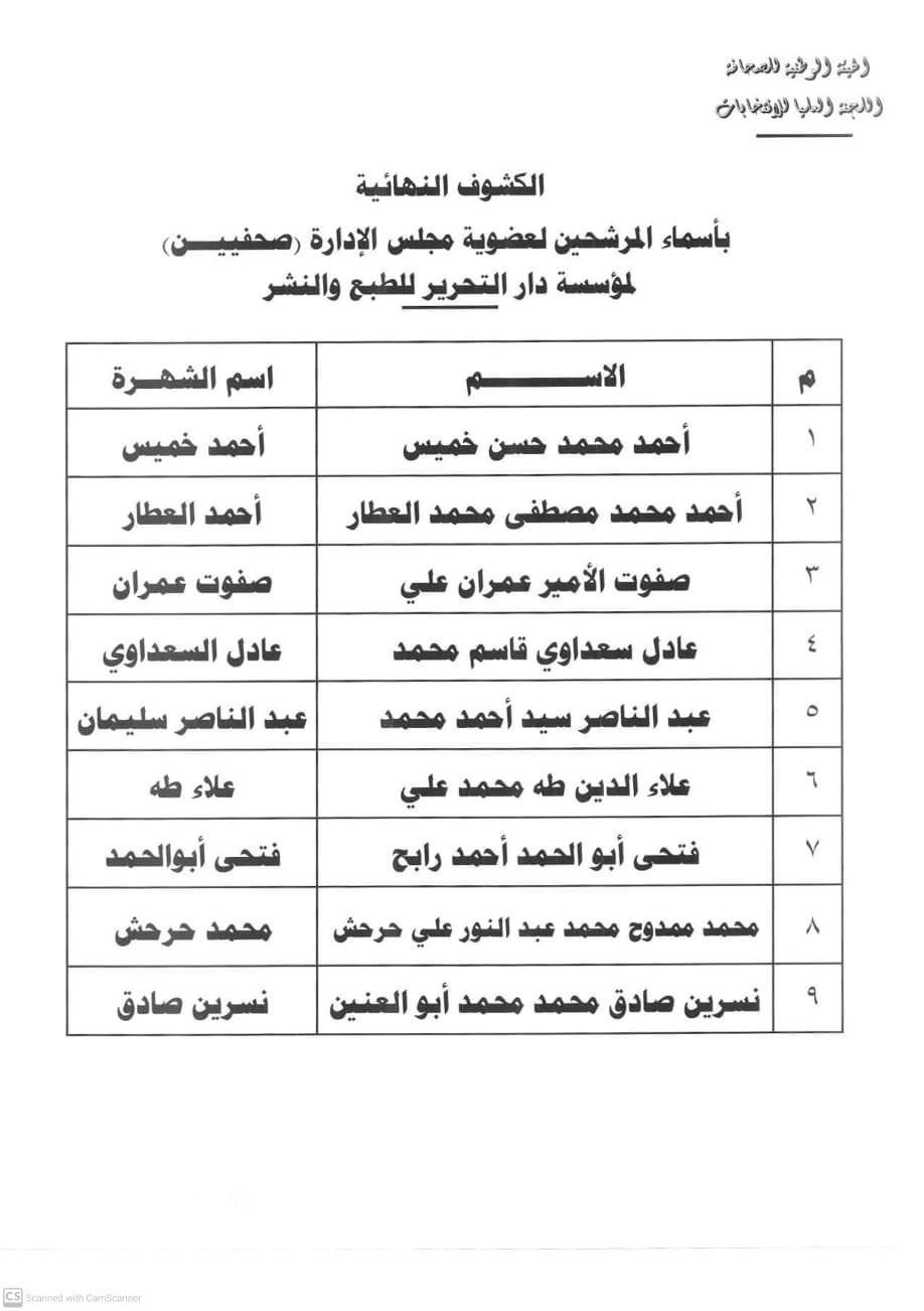 وتم موافاة المؤسسات الصحفية القومية صباح اليوم الأحد بالكشوف النهائية للمرشحين لتعليقها في أماكن واضحة بالمؤسسات وفروعها.