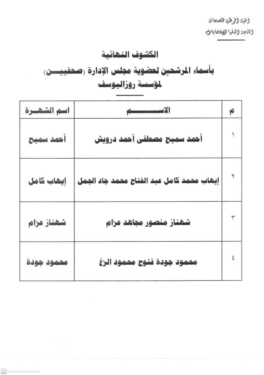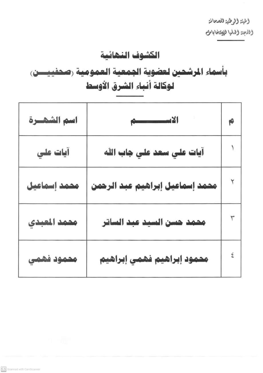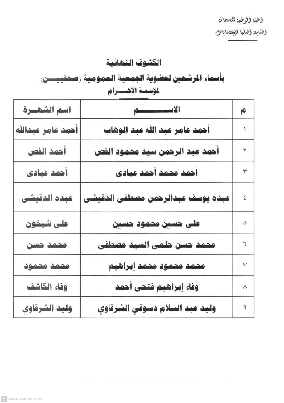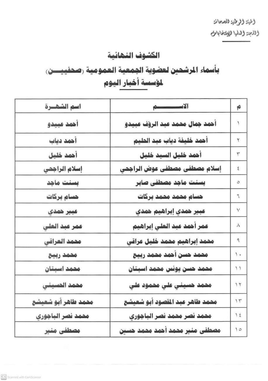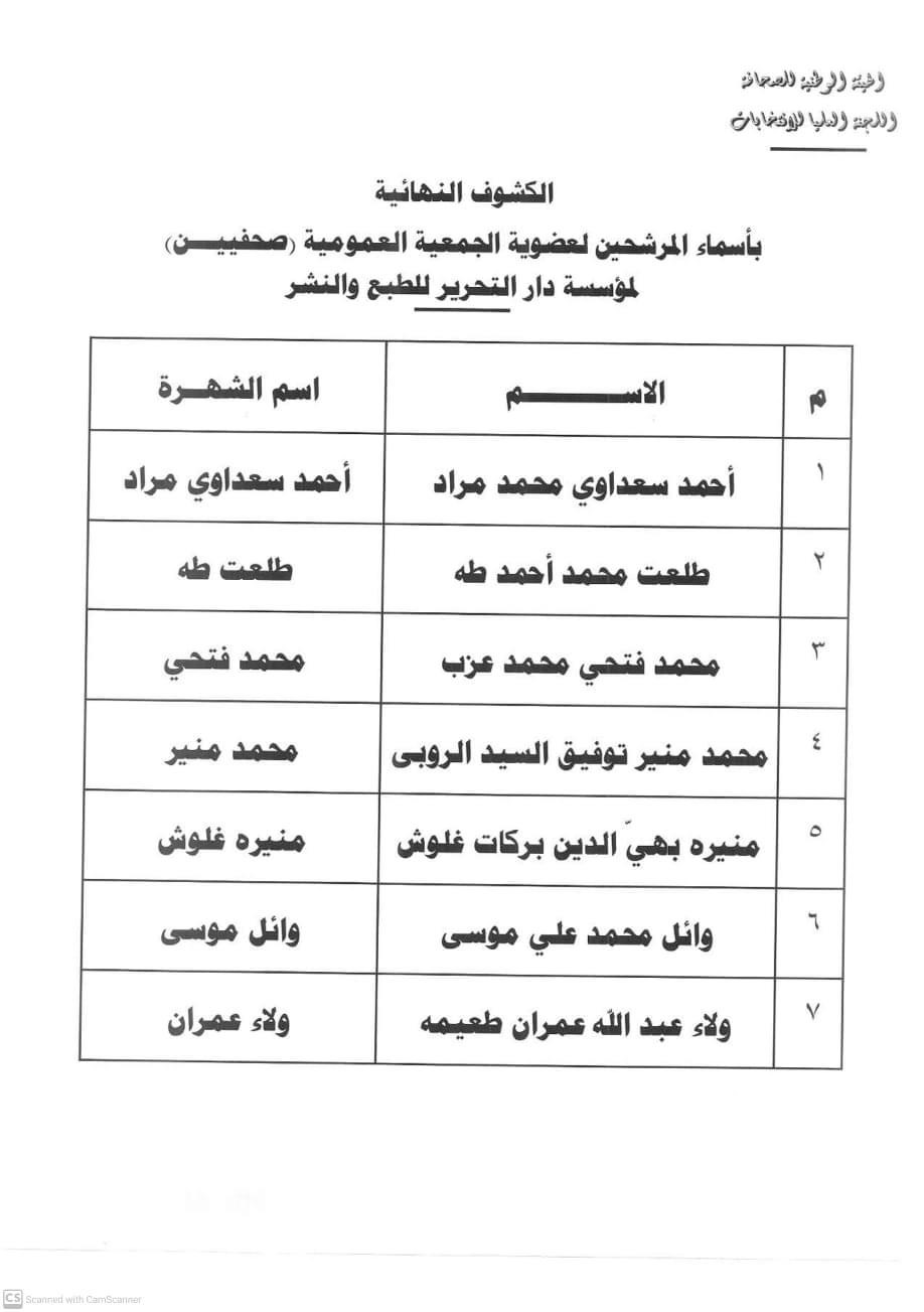 وتم موافاة المؤسسات الصحفية القومية صباح اليوم الأحد بالكشوف النهائية للمرشحين لتعليقها في أماكن واضحة بالمؤسسات وفروعها.