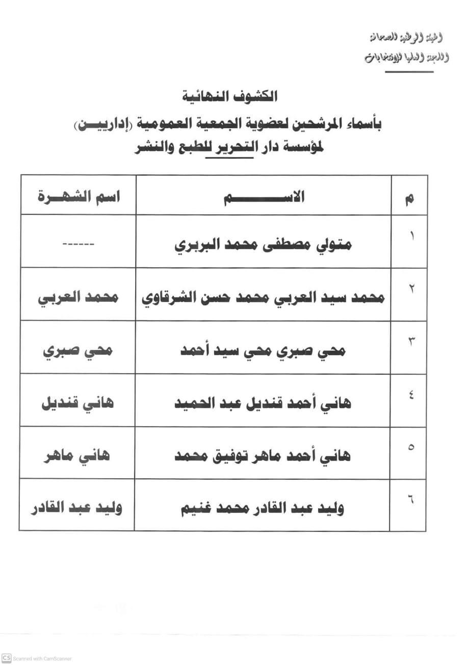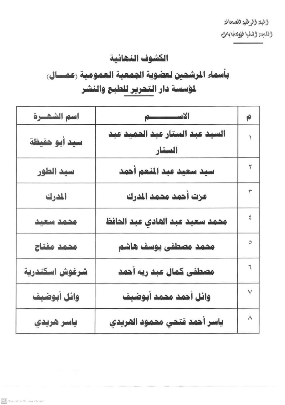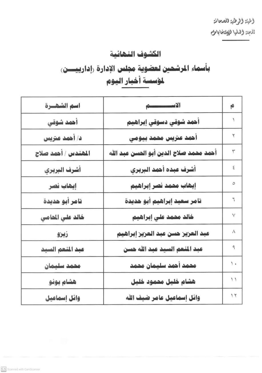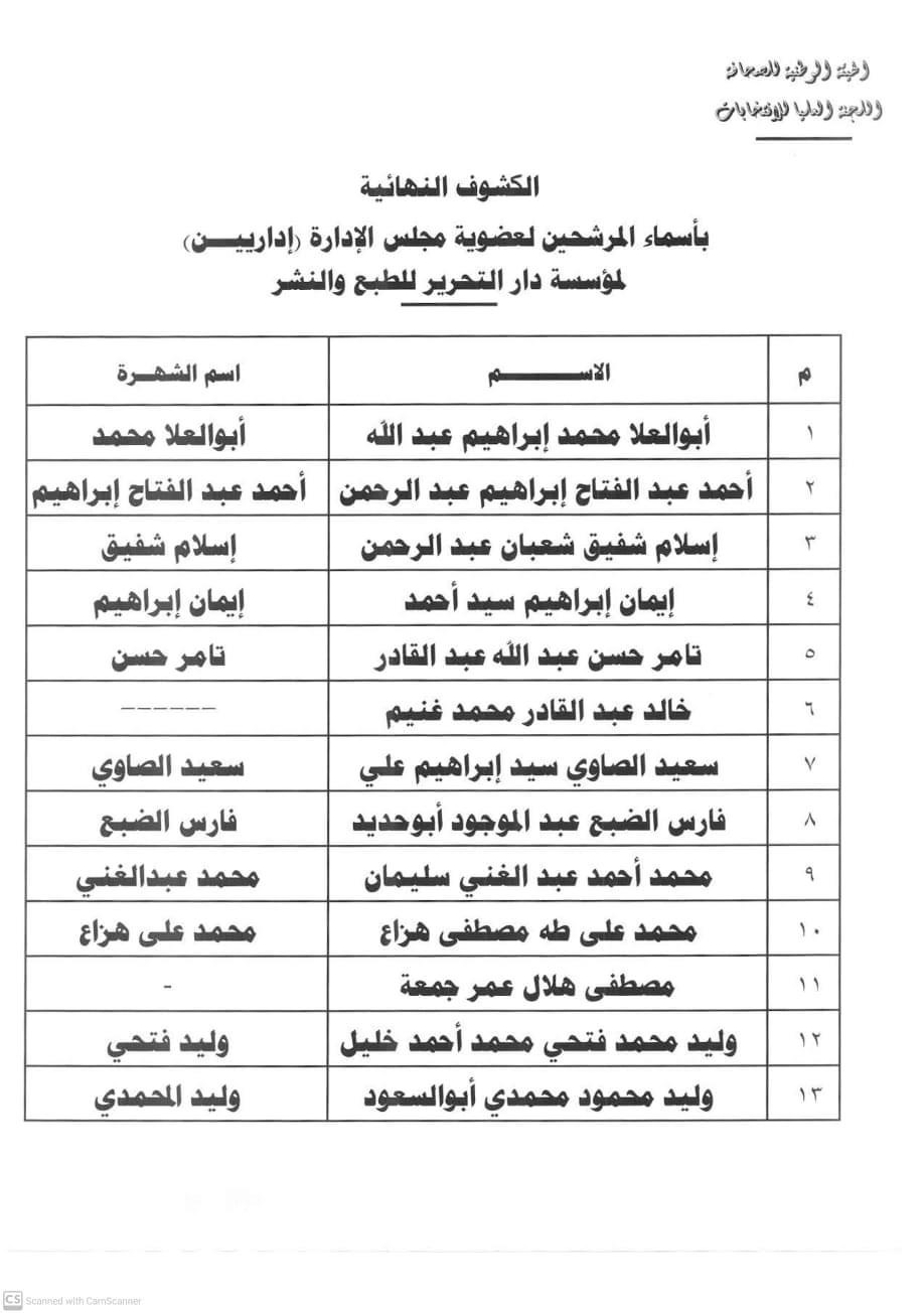وتم موافاة المؤسسات الصحفية القومية صباح اليوم الأحد بالكشوف النهائية للمرشحين لتعليقها في أماكن واضحة بالمؤسسات وفروعها.