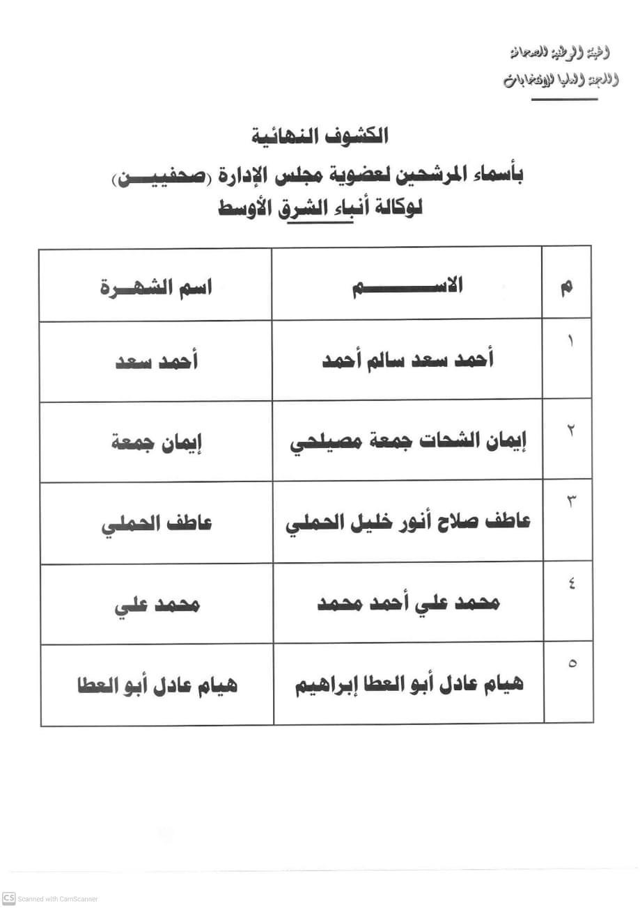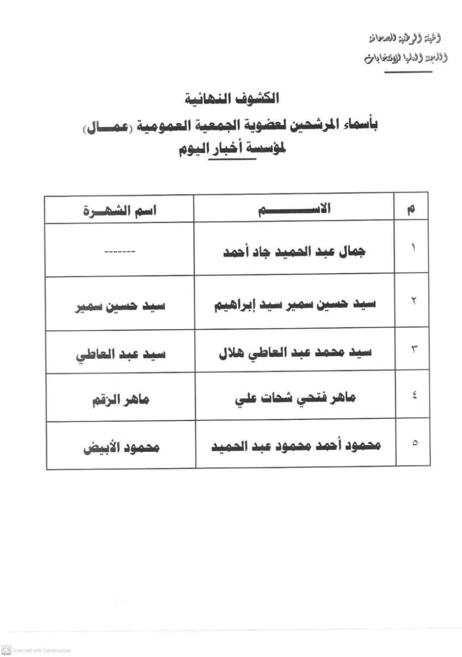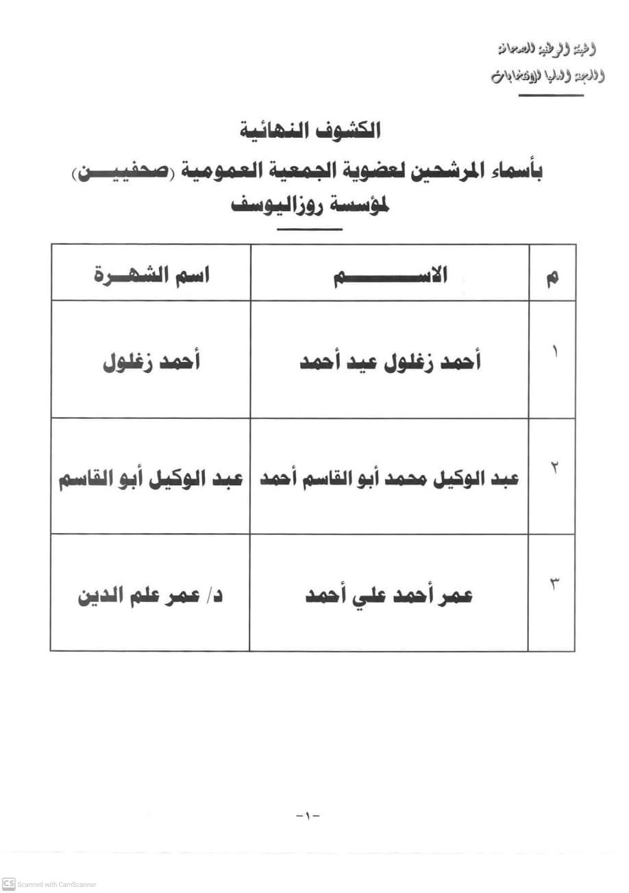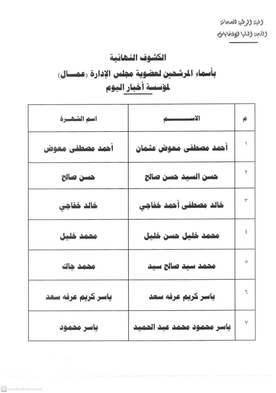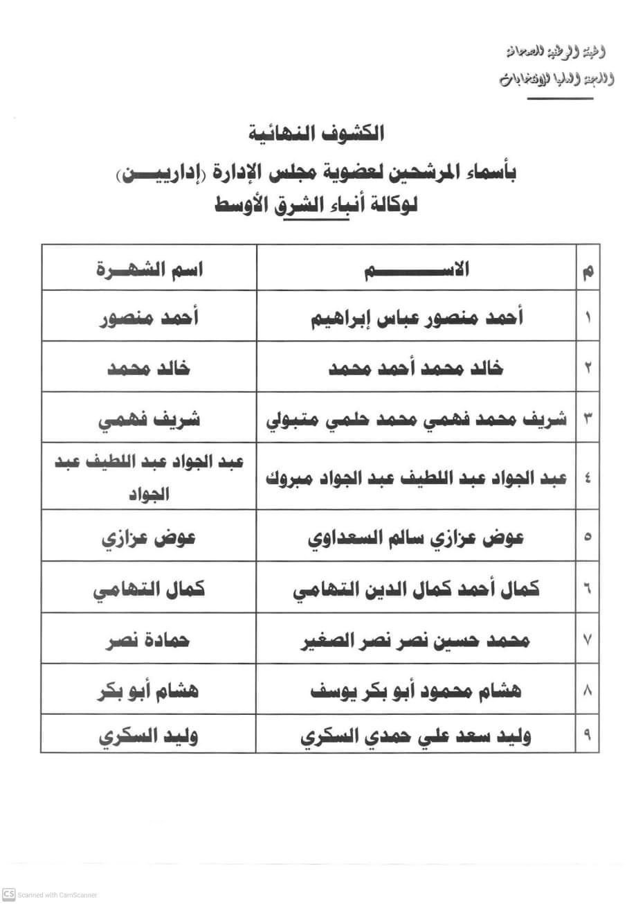 وتم موافاة المؤسسات الصحفية القومية صباح اليوم الأحد بالكشوف النهائية للمرشحين لتعليقها في أماكن واضحة بالمؤسسات وفروعها.