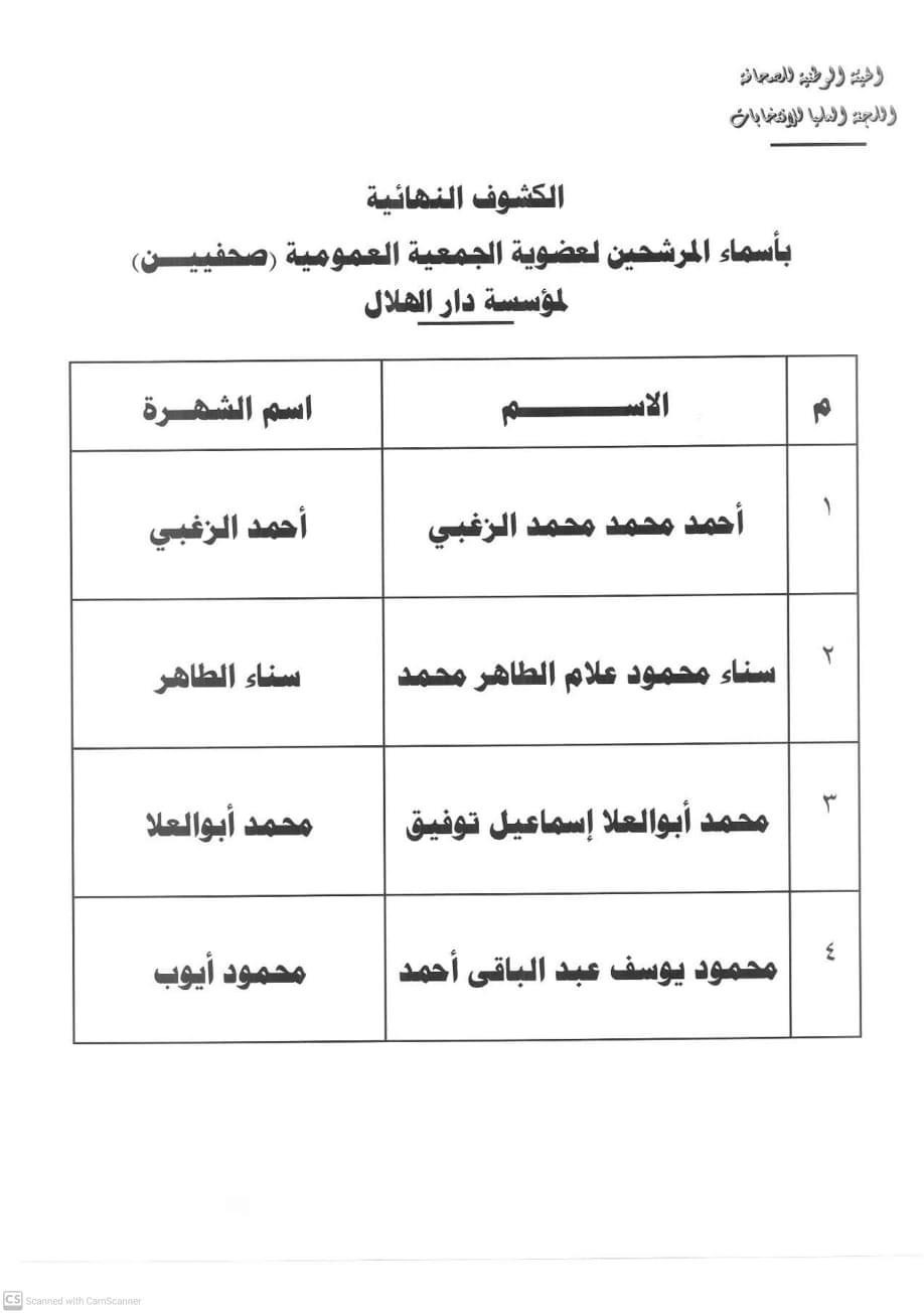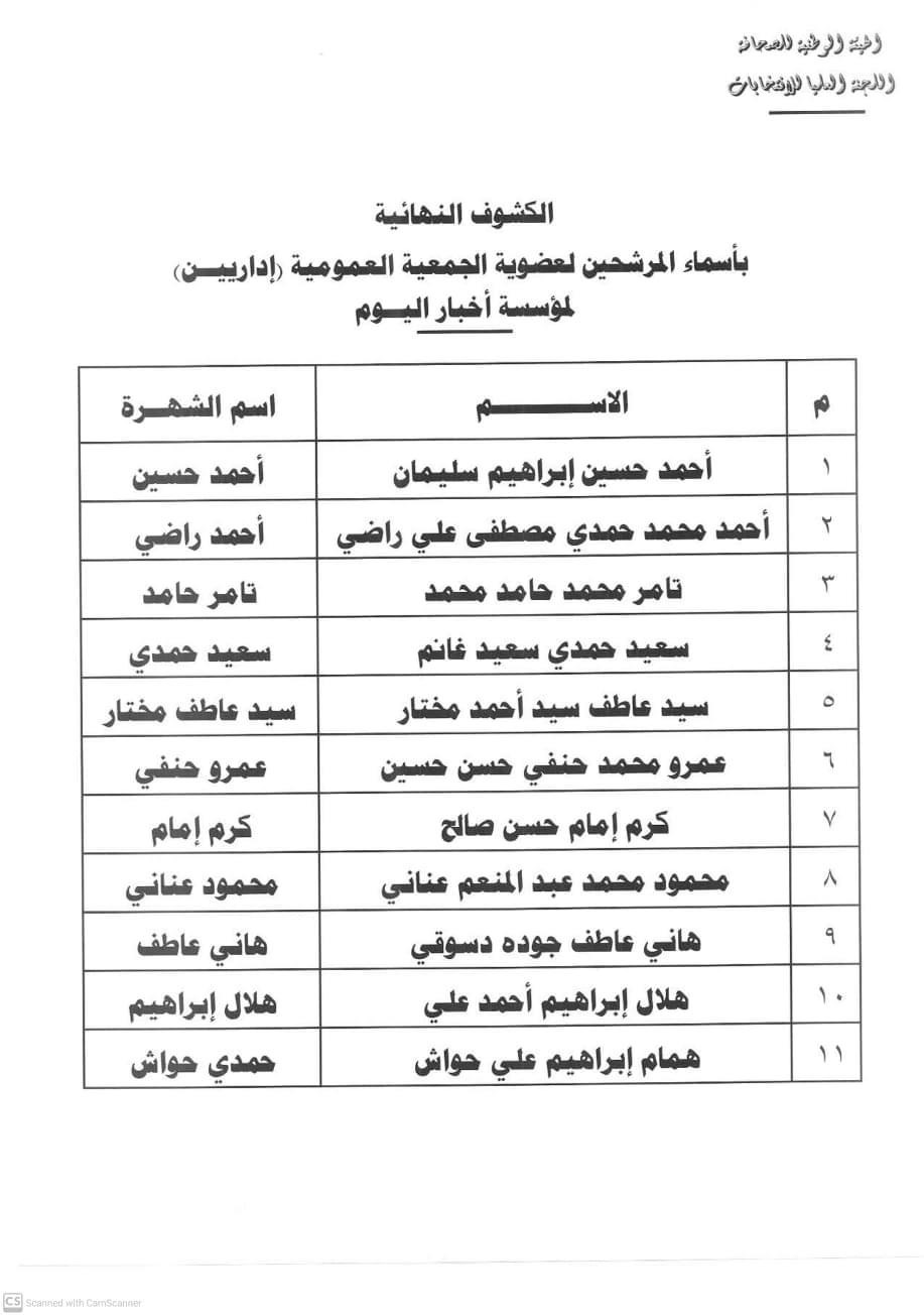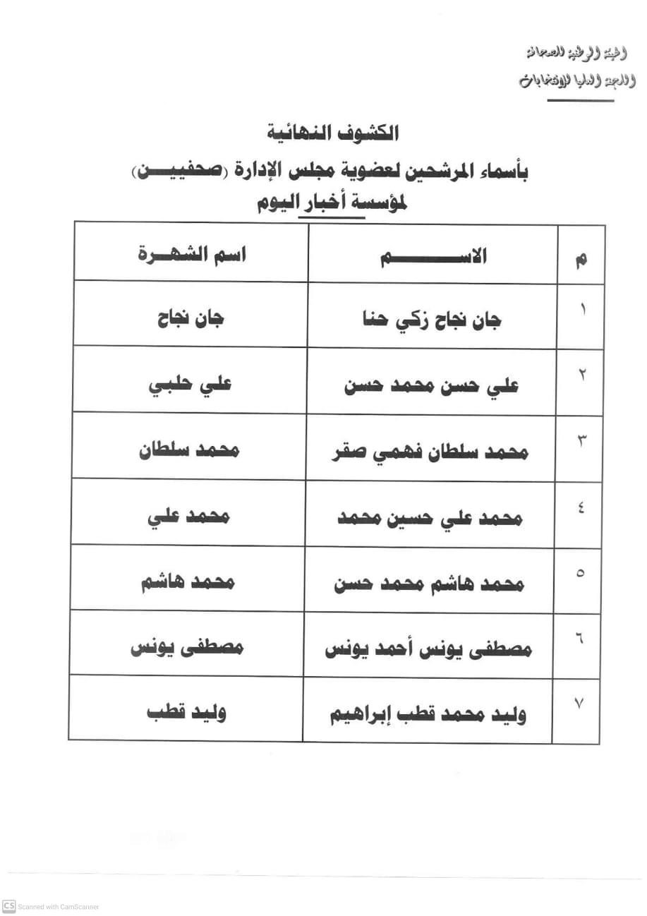 أعلنت الهيئة الوطنية للصحافة عن الكشوف النهائية بأسماء المرشحين لعضوية مجالس الإدارات والجمعيات العمومية بالمؤسسات الصحفية القومية، وذلك طبقًا لما انتهت إليه اللجنة العليا للإشراف على الانتخابات المُشكلة بموجب قرار الهيئة.