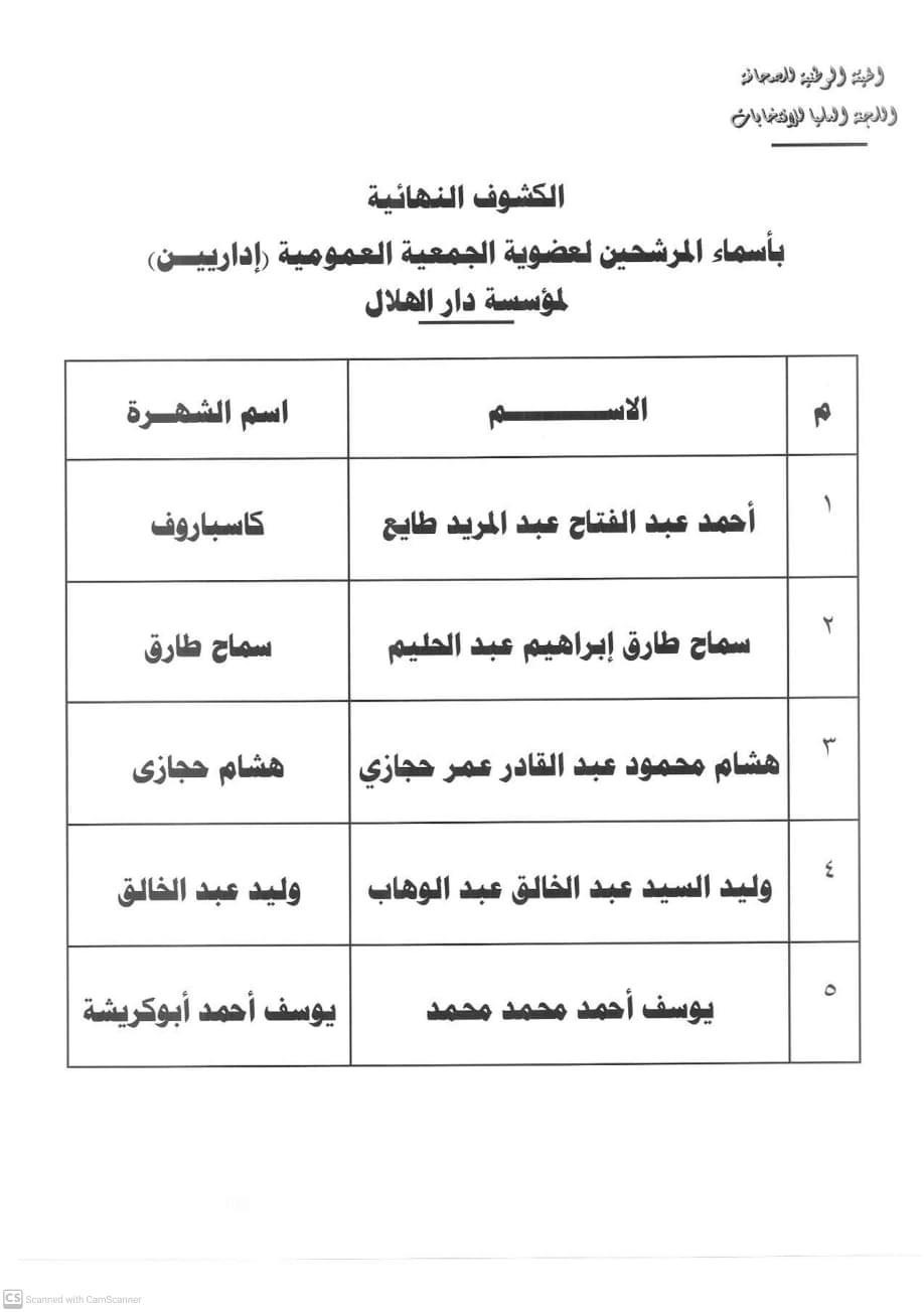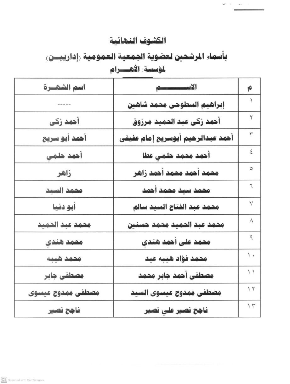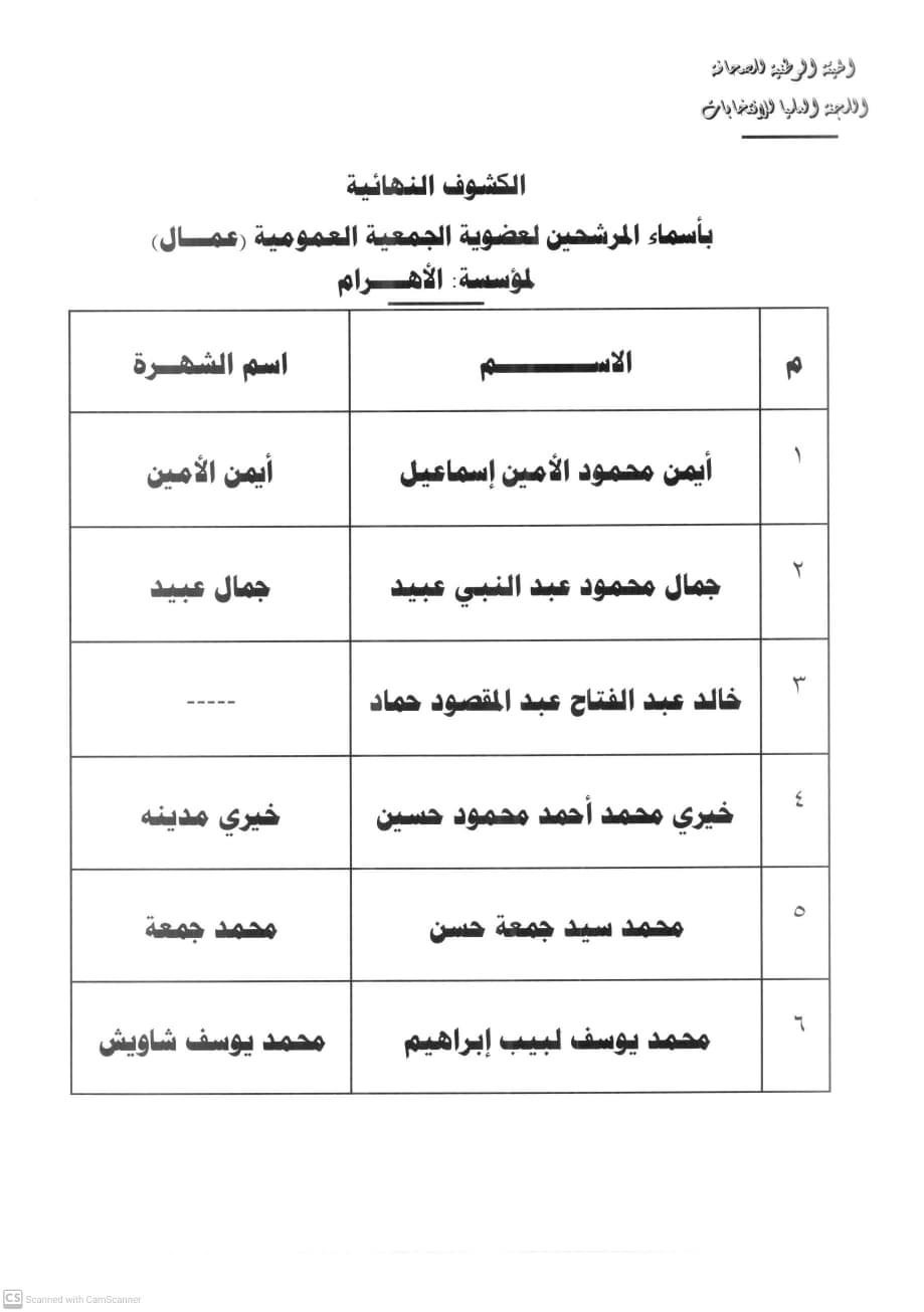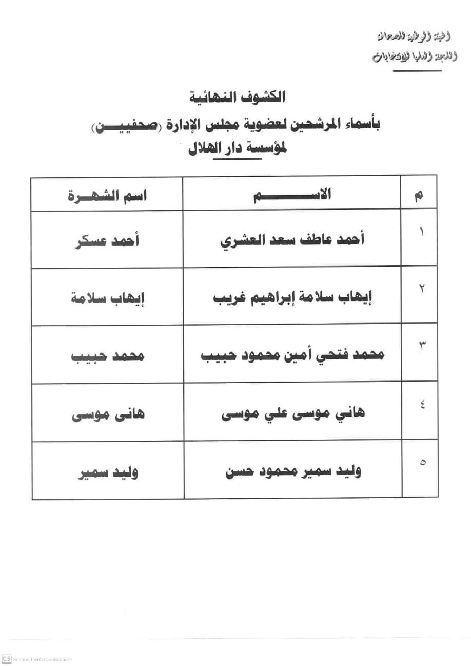 أعلنت الهيئة الوطنية للصحافة عن الكشوف النهائية بأسماء المرشحين لعضوية مجالس الإدارات والجمعيات العمومية بالمؤسسات الصحفية القومية، وذلك طبقًا لما انتهت إليه اللجنة العليا للإشراف على الانتخابات المُشكلة بموجب قرار الهيئة.