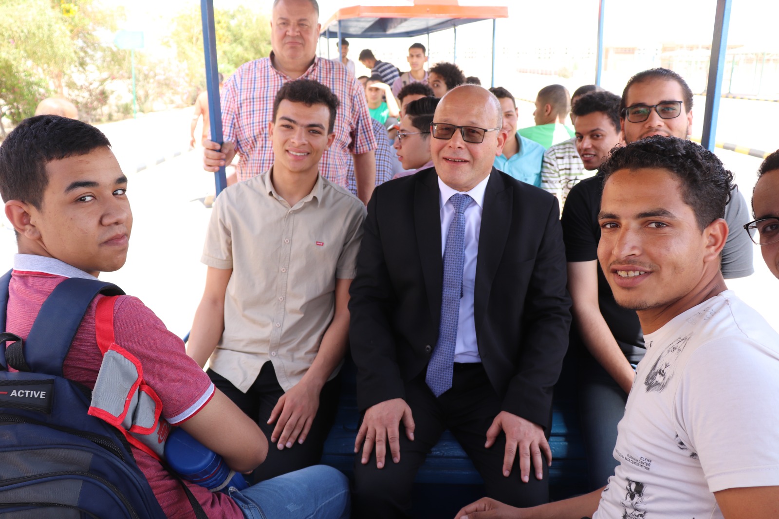 رئيس جامعة سوهاج يستقل الطفطف مع طلابه لتسهيل التنقل مجانًا
