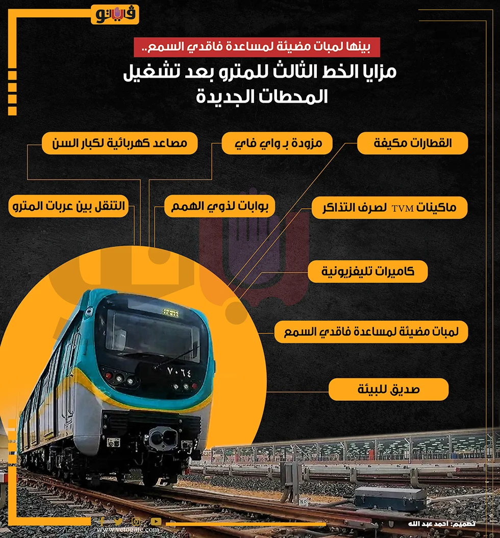 - تمتع القطارات بالخط الثالث لمترو الأنفاق بنظام تكييف هواء عالي السعة
