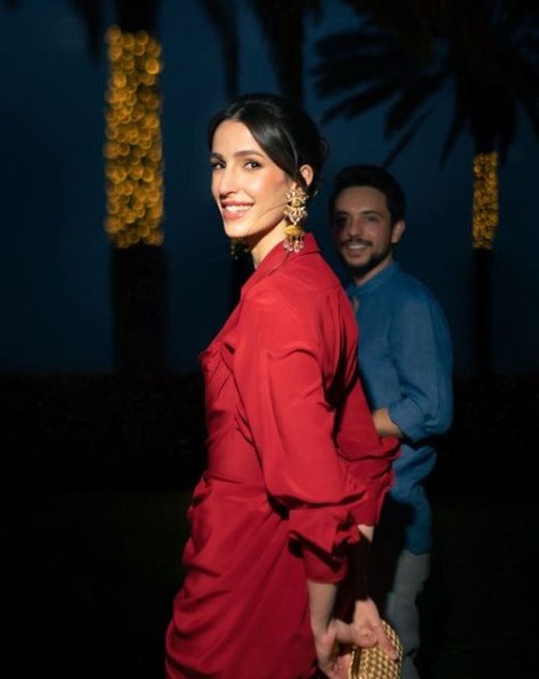 وفي الصورة التي نشرتها وكالة الأنباء الأردنية "بترا"، اختارت قرينة ولي العهد الأردني إطلالة راقية من باكو رابان PacoRabanne.