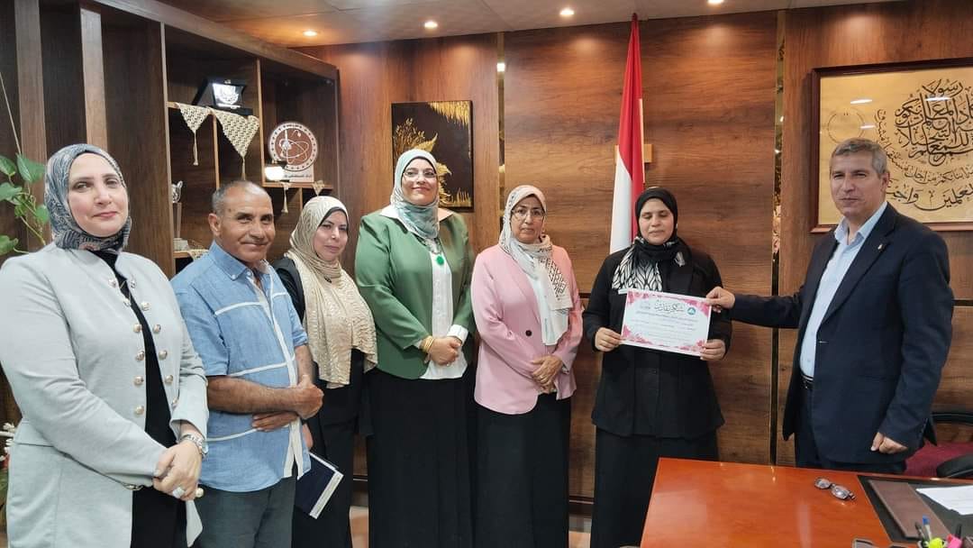 وسلم وكيل الوزارة شهادات التقدير للمعلمات الفائزات في المسابقة بحضور د. إيناس عبد الخالق مدير عام الشؤون التنفيذية والخدمات التعليمية وعلاء ناشد موجه التربية الاجتماعية وهالة مردان أعضاء لجنة التقييم وصفاء الحطاب موجه أول الديوان رياض اطفال.