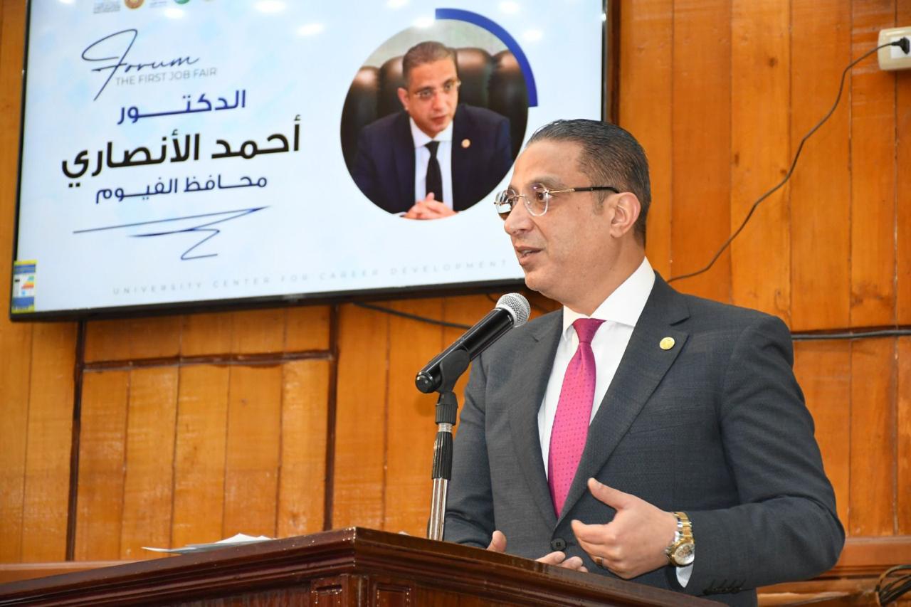 يوفر 1500 فرصة عمل، محافظ الفيوم يفتتح الملتقي التوظيفي الأول بالجامعة