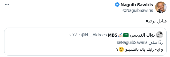 وعن رأيه في الممثل العالمي آل باتشينو قال المهندس نجيب ساويرس: "هايل برضه"