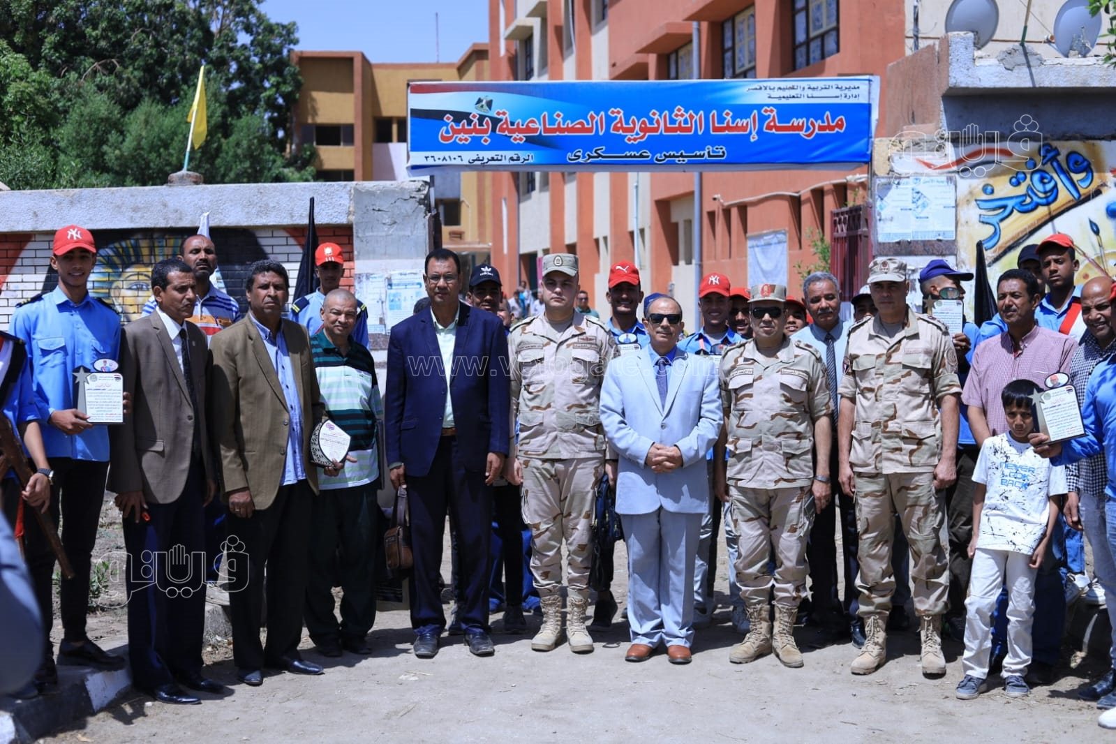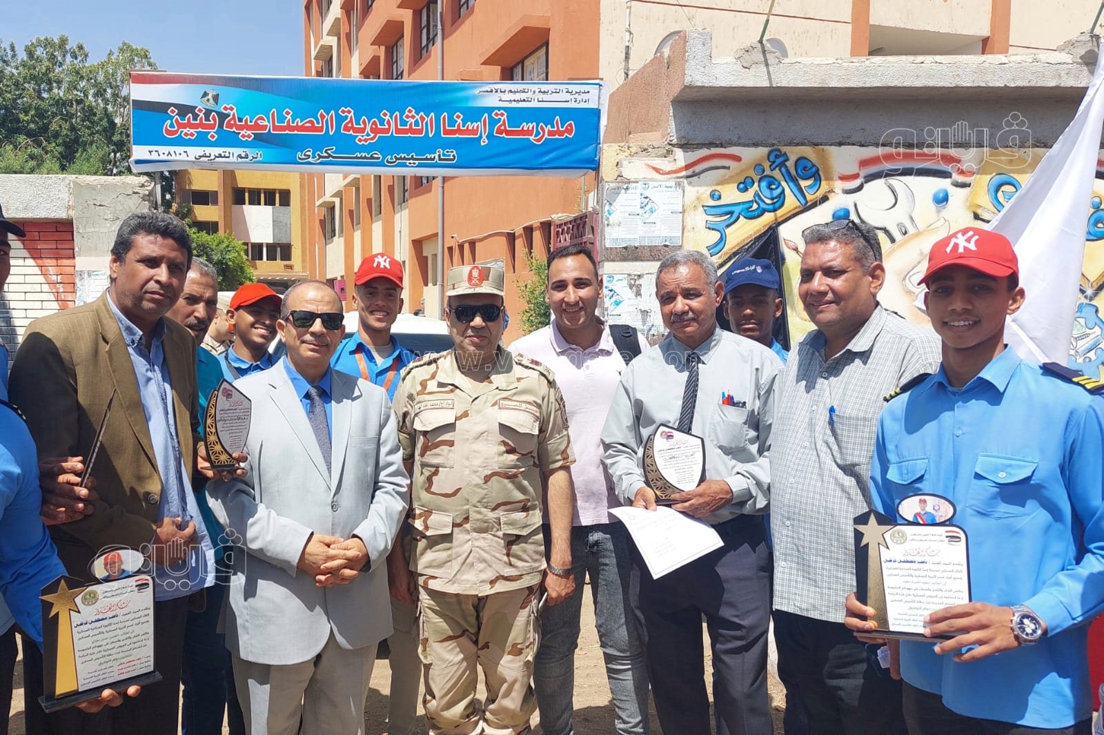 وذلك بحضور اللواء أ.ح محمد رافت الهواري قائد قطاع الأقصر وأسوان للتأسيس العسكري، والعميد ناصر مصطفى القائد العسكري لمدرسة إسنا الثانوية الصناعية العسكرية، والرائد محمود حجازي مساعد المستشار العسكري لمحافظة الأقصر، وإبراهيم عامر مدير التعليم الفني لإدارة إسنا التعليمية، وعادل تاج مدير مدرسة إسنا الثانوية الصناعية العسكرية، والمدرسيين ومديريين الأقسام وطلاب المدرسة.