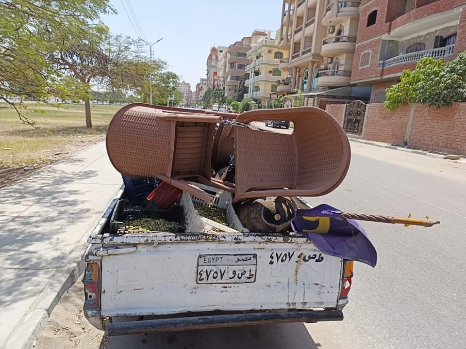 الوحدة المحلية لحي ثالث الإسماعيلية تزيل كرفان مخالفا بمنطقة المسطحات الخضراء (صور)