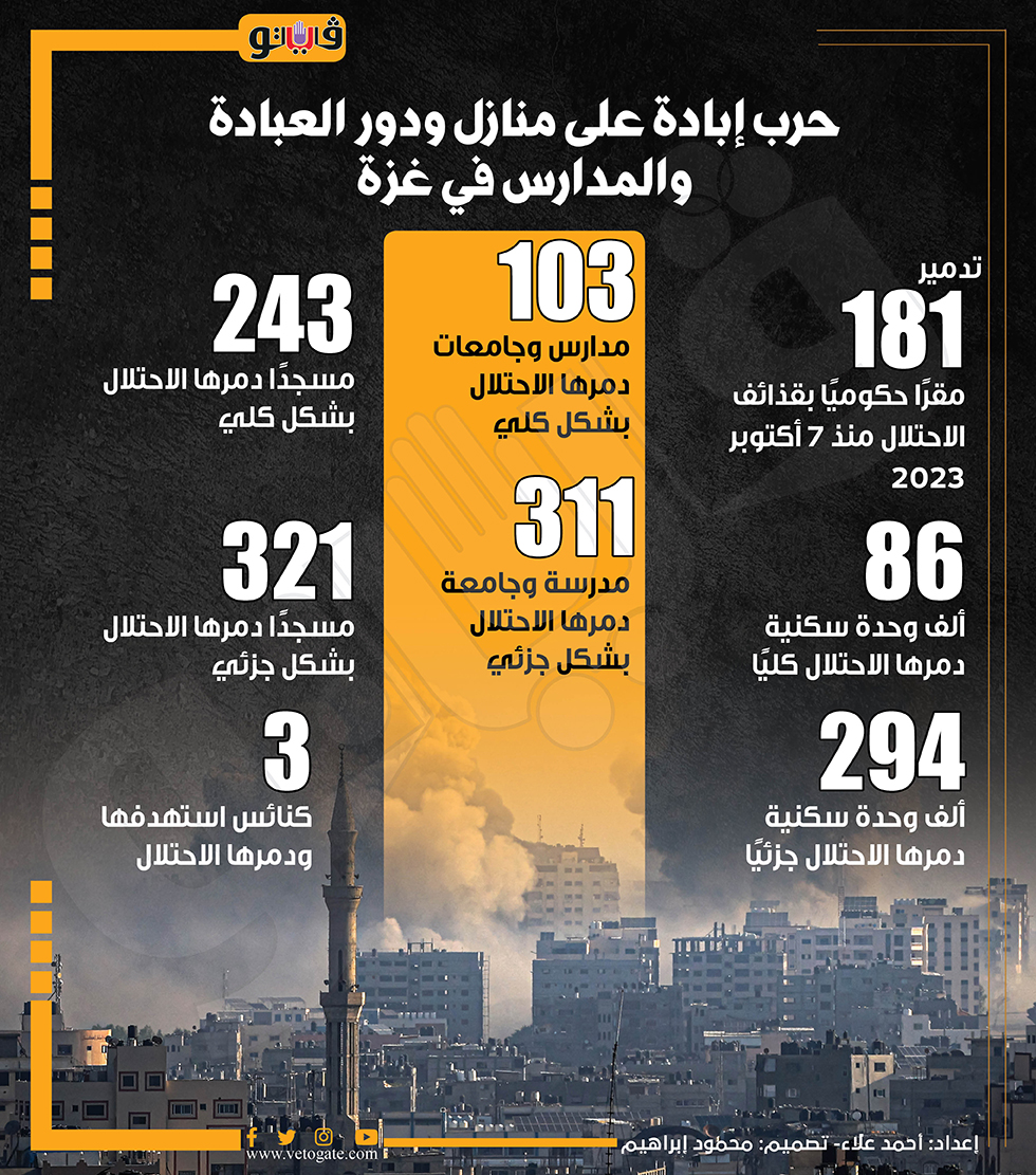 حرب إبادة على منازل ودور العبادة والمدارس في غزة (إنفوجراف) الثلاثاء 30/أبريل/2024 - 05:11 م 4/30/2024 5:11:44 PM قطاع غزة، فيتو شارك طباعة 18 حجم الخط شارك طباعة العدوان الاسرائيلي علي غزة غزة جيش الاحتلال تدمير قطاع غزة قطاع غزة