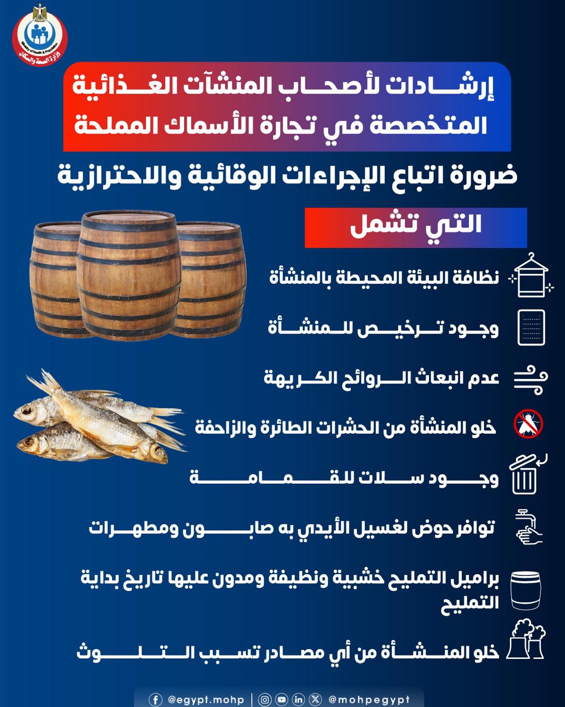 وقالت وزارة الصحة في منشور توعوي انه يجب على محلات بيع الأسماك المملحة أن تطبق الإجراءات الوقائية ومنها: