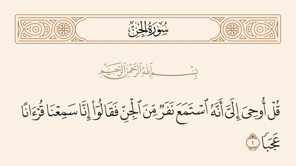 قال تعالى: «قُلْ أُوحِيَ إِلَيَّ أَنَّهُ اسْتَمَعَ نَفَرٌ مِنَ الْجِنِّ فَقالُوا إِنَّا سَمِعْنا قُرْآنًا عَجَبًا».