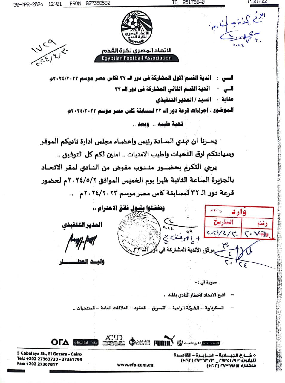 كأس مصر، اتحاد الكرة يخطر الأندية بموعد قرعة دور الـ 32