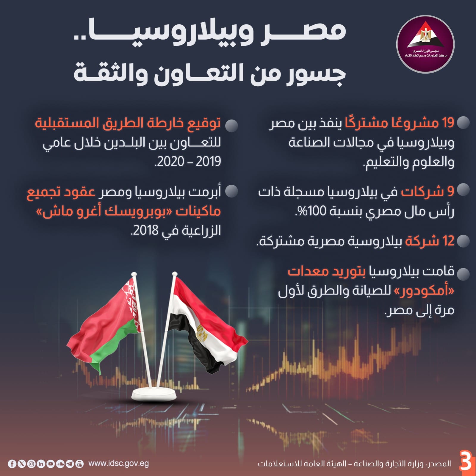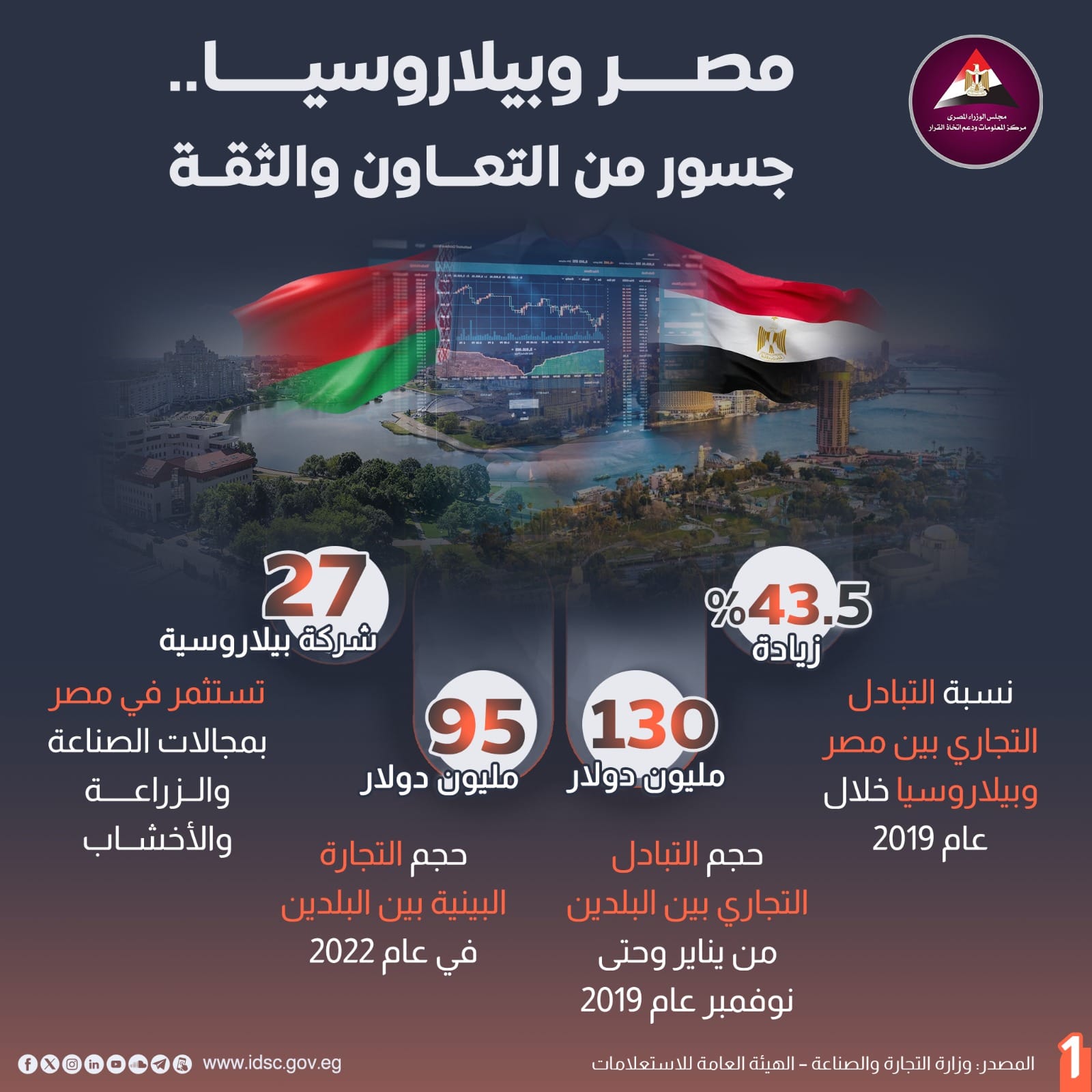 كشف مركز المعلومات ودعم اتخاذ القرار بمجلس الوزراء عن حجم التعاون بين المصري وبيلاروسيا خلال السنوات الأخيرة.