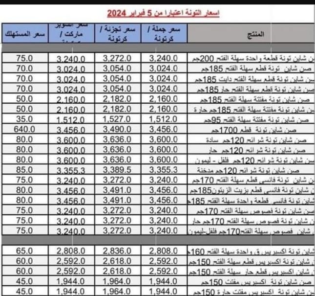 وانخفض سعر تونة صن شاين فانسي قطع بزيت الزيتون سهلة الفتح وزن 185 جرامًا إلى 65 جنيهًا للمستهلك.