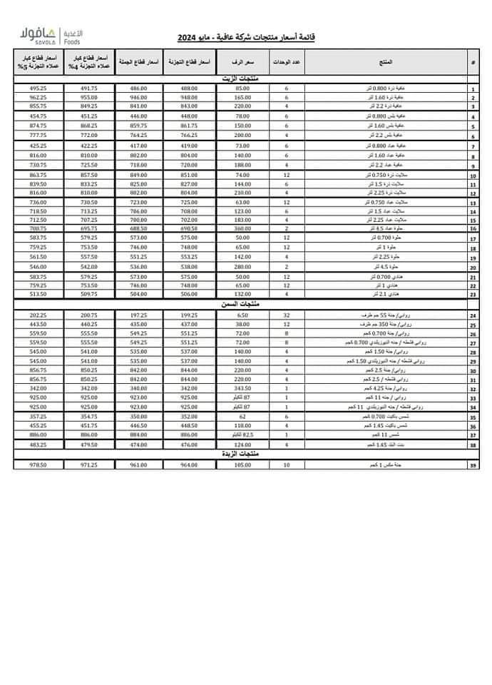 انخفاض جديد في أسعار زيت عافية وحلوة وهنادي وسلايت وسمن روابي وجنة