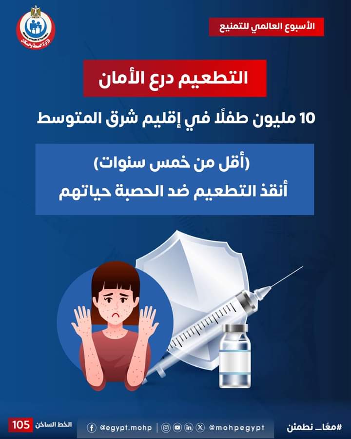 أكدت وزارة الصحة والسكان أن التطعيم ضد مرض الحصبة أنقذ ١٠ ملايين طفل في إقليم شرق المتوسط، أقل من خمس سنوات.
