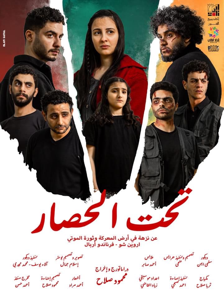 مسرحية تحت الحصار مأخوذة عن "نزهة في أرض المعركة وثورة الموتى" لأروين شو - فرناندو أرابال، دراماتورج وإخراج محمود صلاح.