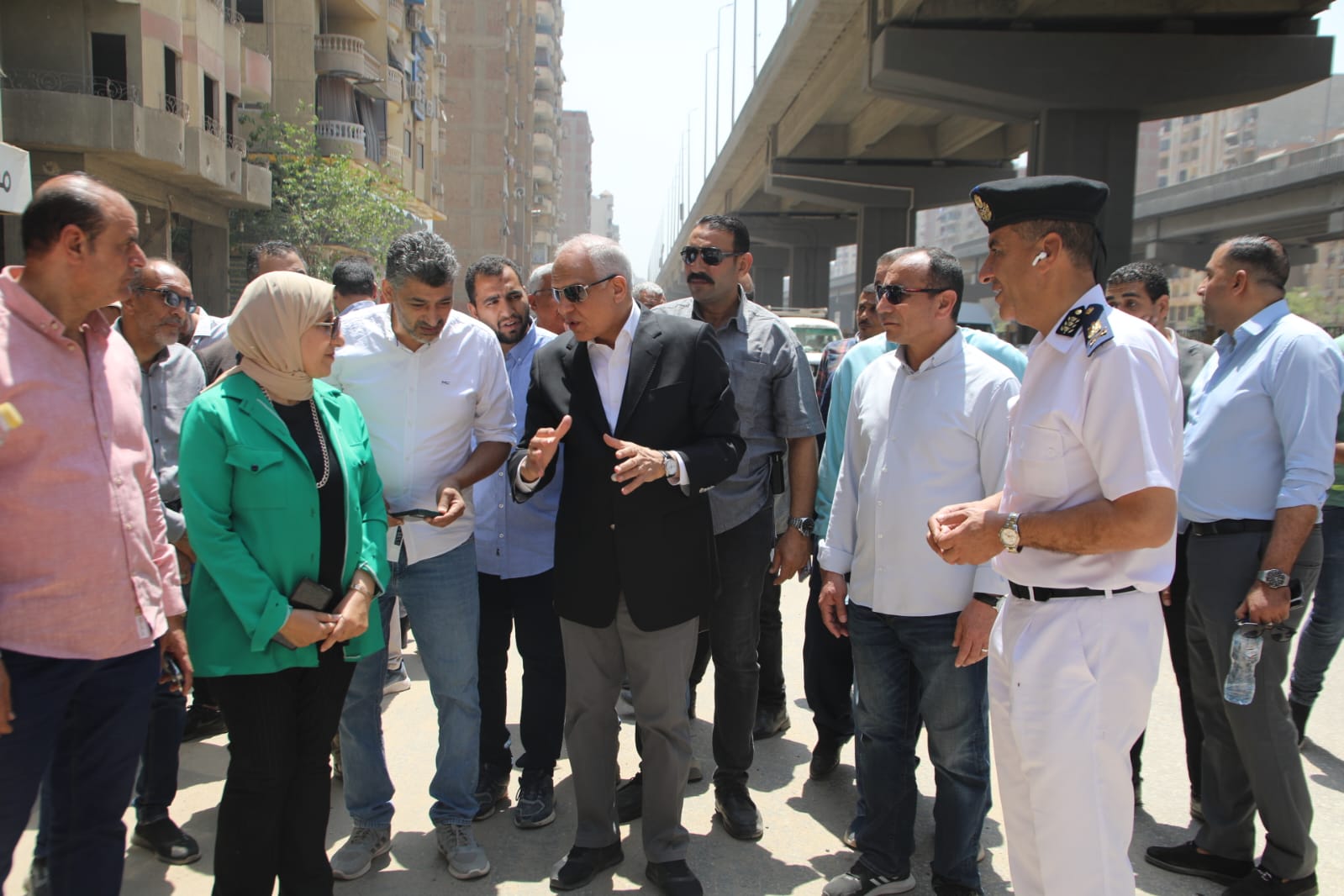 رافق محافظ الجيزة خلال جولته اللواء شاكر يونس السكرتير العام و أيمن عتريس رئيس جهاز التفتيش والمتابعة واللواء هشام عبد الصمد قائد شرطة المرافق بالجيزة والمهندسة رضوي حامد مدير مديرية الإسكان والمهندسة نجوي السعيد مدير مديرية الطرق والنقل وطه عبد الصادق رئيس حي الهرم وأشرف تامر رئيس حي الطالبية ومحمود حسين رئيس جهاز السرفيس والنقل الجماعي وشفيق جلال رئيس الهيئة للنظافة والتجميل بالجيزة ومحمد جمال مدير إدارة التسويق واستشاري المشروع ومسئولي الإدارة العامة لمرور الجيزة وشركة مياه الشرب والصرف الصحي وشركة الكهرباء.