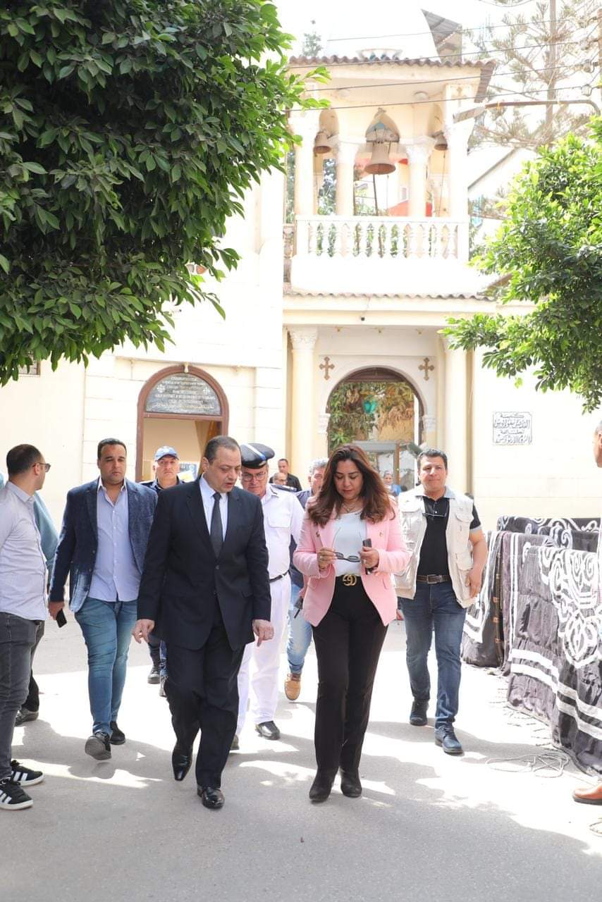 زارت الدكتورة منال عوض محافظ دمياط، يرافقها اللواء حسام توفيق مساعد وزير الداخلية- مدير أمن دمياط، اليوم الأربعاء، كنيسة الروم الأرثوذكس بمدينة دمياط، للمشاركة فى احتفالات الكنيسة بعيد القيامة المجيد، حيث كان فى استقبالهما الأب بندليمون راعى الكنيسة.