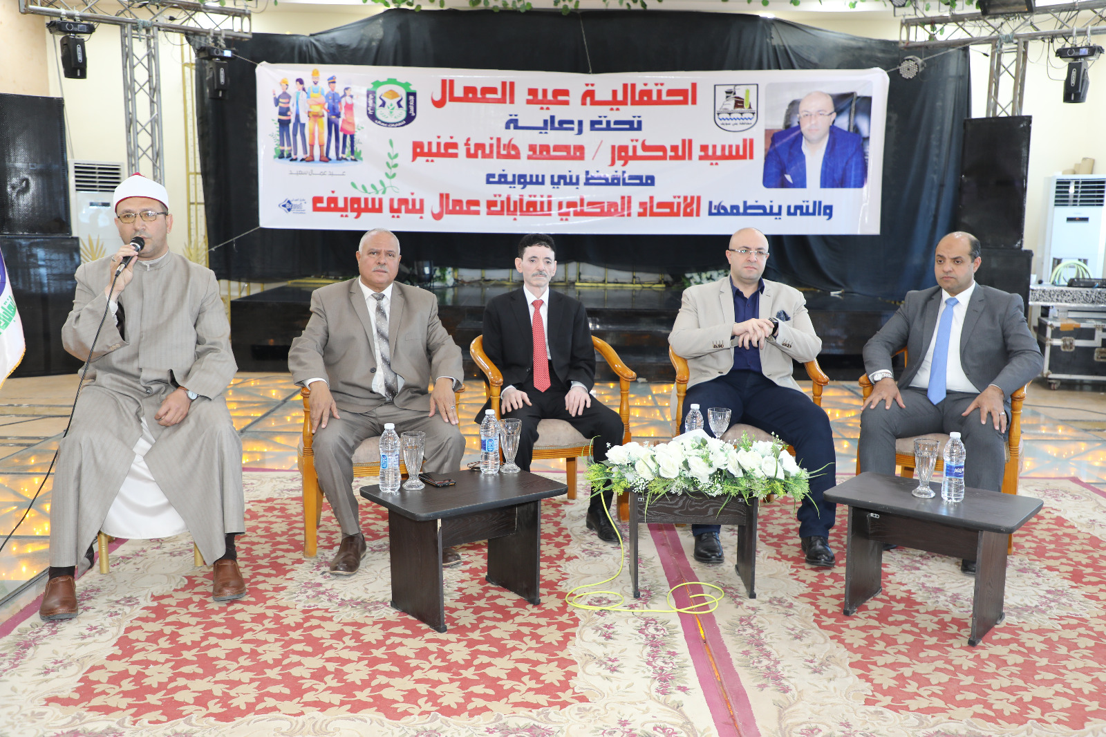 شهد الدكتور محمد هاني غنيم محافظ بني سويف، الاحتفالية التي نظمها الاتحاد المحلي لنقابات عمال بني سويف، بمناسبة عيد العمال، وذلك بقاعة نادي الإدارة المحلية.